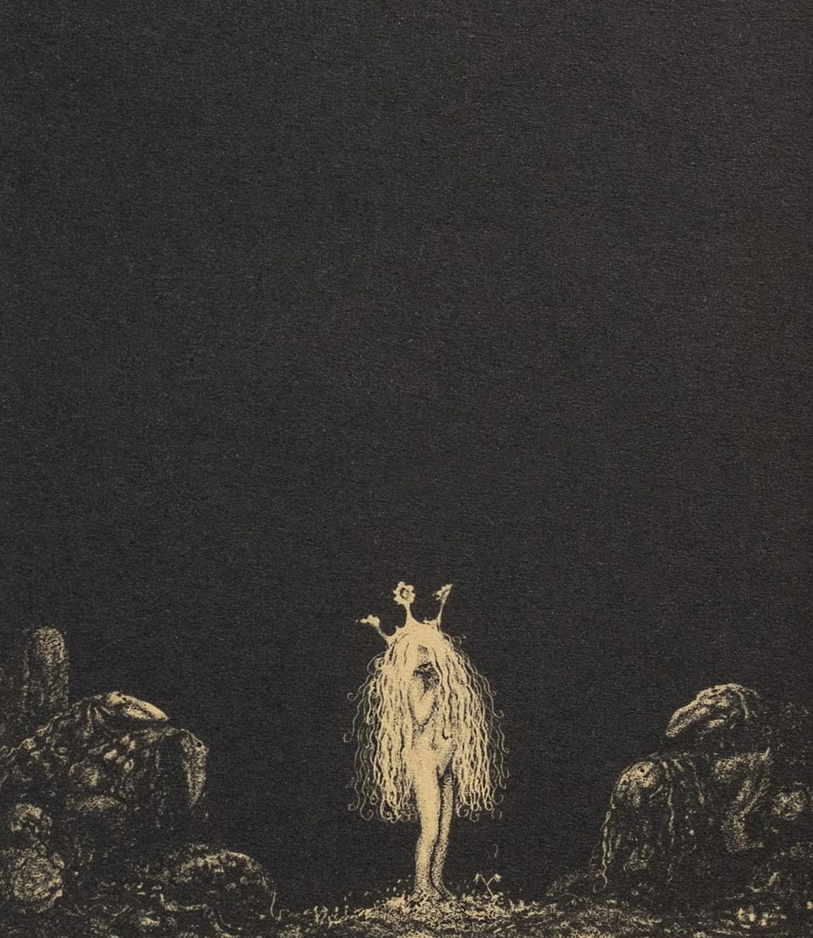 Throughout his life, Bauer came to return in his art to the childhood neighbourhoods in Småland. The untouched Swedish nature where trolls and other fairy tale characters can be seen growing out of the boulders is animated through Bauer's treatment and appears as a mythical primordial force. During his years of study, he was fascinated by early German and Italian painting but soon returned to the Swedish fairytale forest. After the marriage, his wife became the princess with the blonde hair, the center of so many of the drawings, i.a. to "Elves and Trolls", which he began publishing in 1907 and gave him the rank of our foremost storyteller. The entire Bauer family died in the sinking of the steamer Per Brahe on Lake Vättern in 1918. John Bauer is represented in Sweden's major museums and private collections in Germany and the USA.
