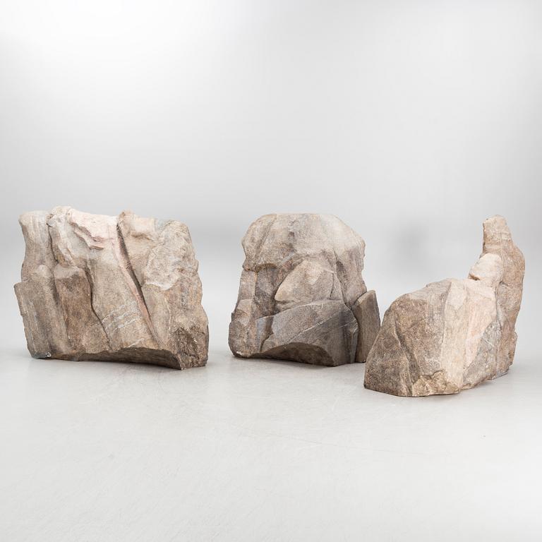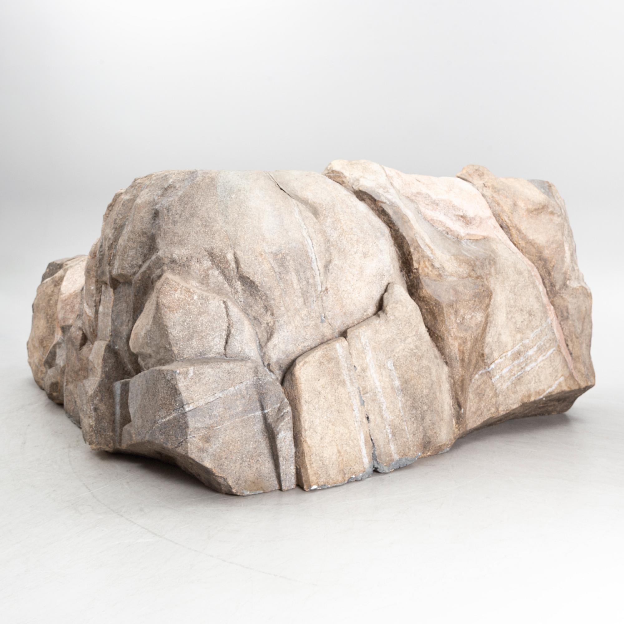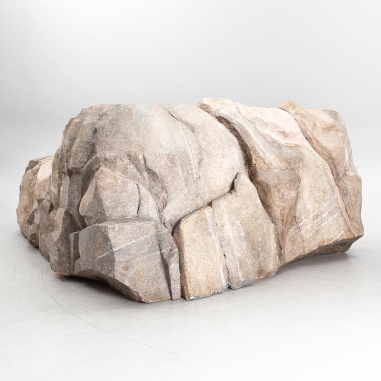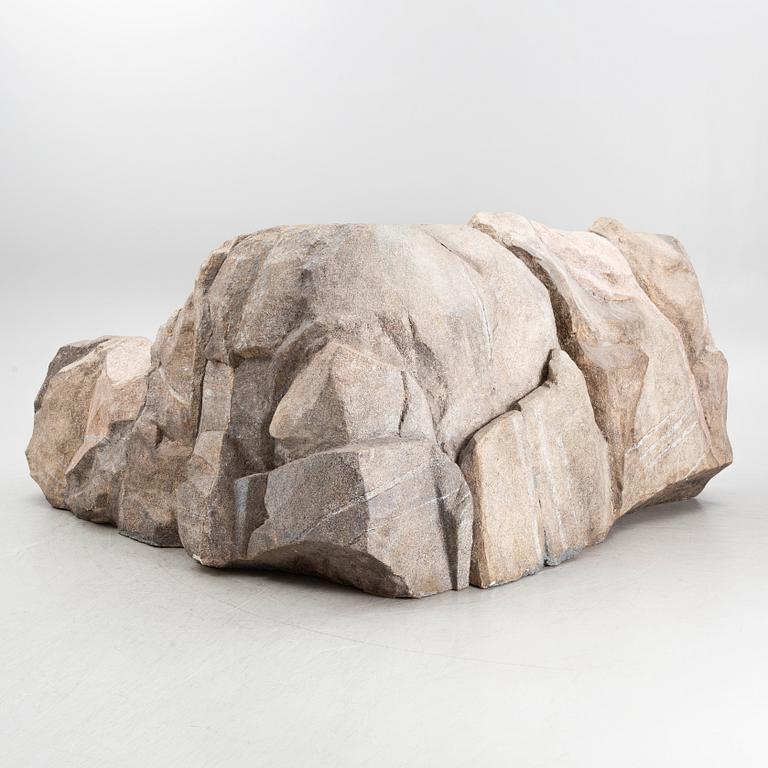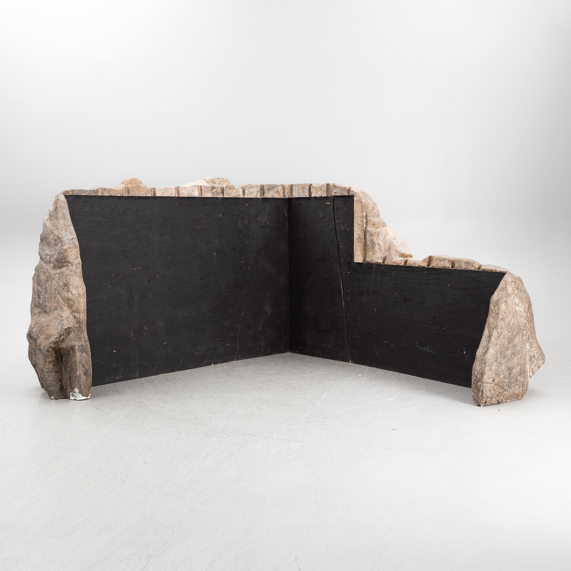 Painted fibreglass, styrofoam, and wood panels. Three sections. Left part approx. length 160, depth 60, height 131 cm. Corner part approx. 120 x 85, height 131 cm. Right part approx. length 175, depth 65, height 135 cm.