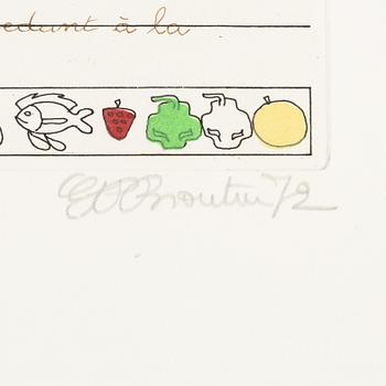 10 of originally 13 colour lithographs, 1974, signed 22/90. Isidore Isou, Maurice Lemaitre, Roland Sabatier, Micheline Hachette, Alain Satie, Jean-Paul Curtay, Jacqueline Tarkieltaub, Gérard-Philippe Broutin, Francois Poyet, Jean-Pierre Gillard, Antoine Grimaud, Alain De Latour, Frédéric Studney. Ed Georges Visat, Paris. In a box.