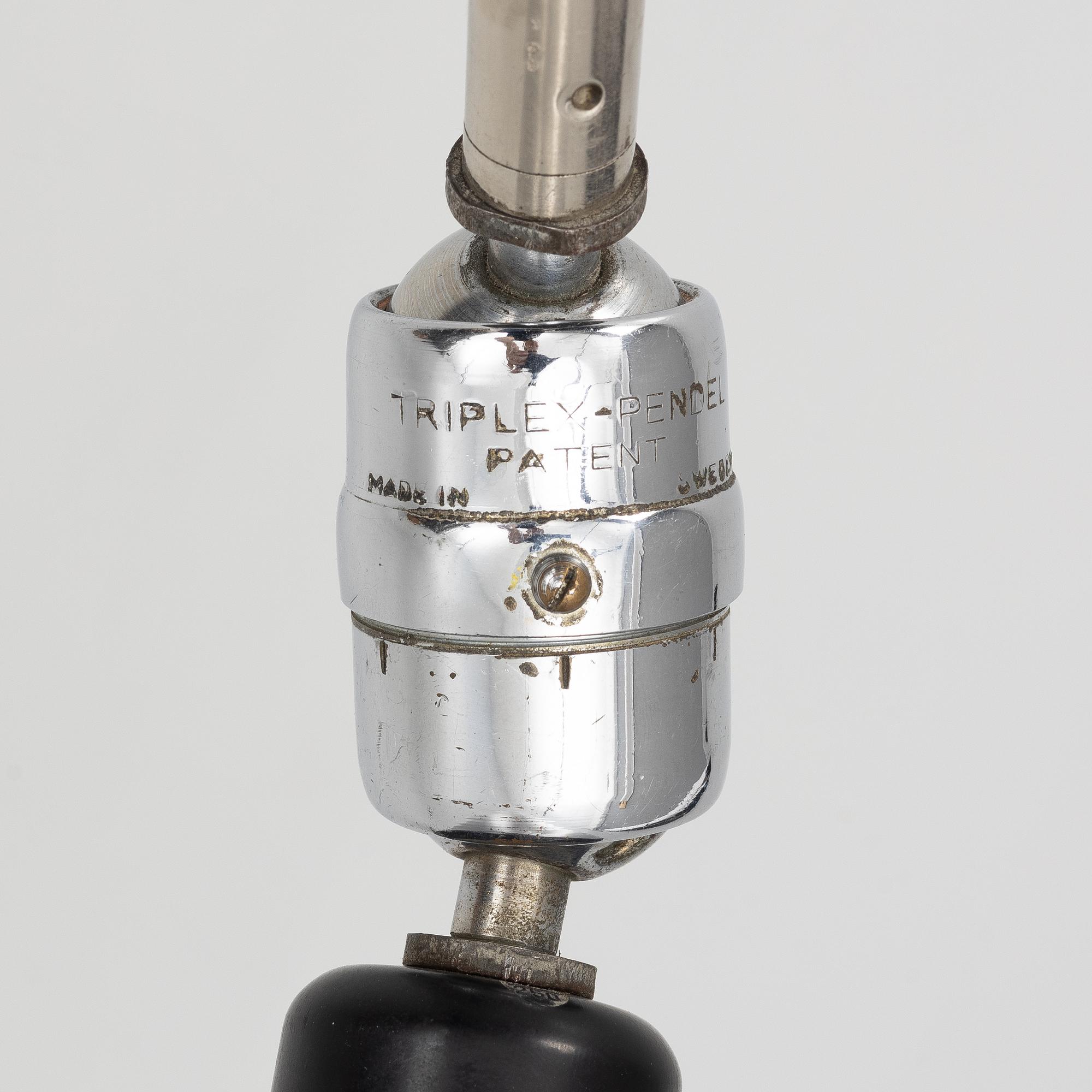Made of lacquered and chrome-plated steel. Adjustable and extendable arm. Marked Triplex Pendel Patent Made in Sweden. 205 cm.