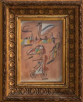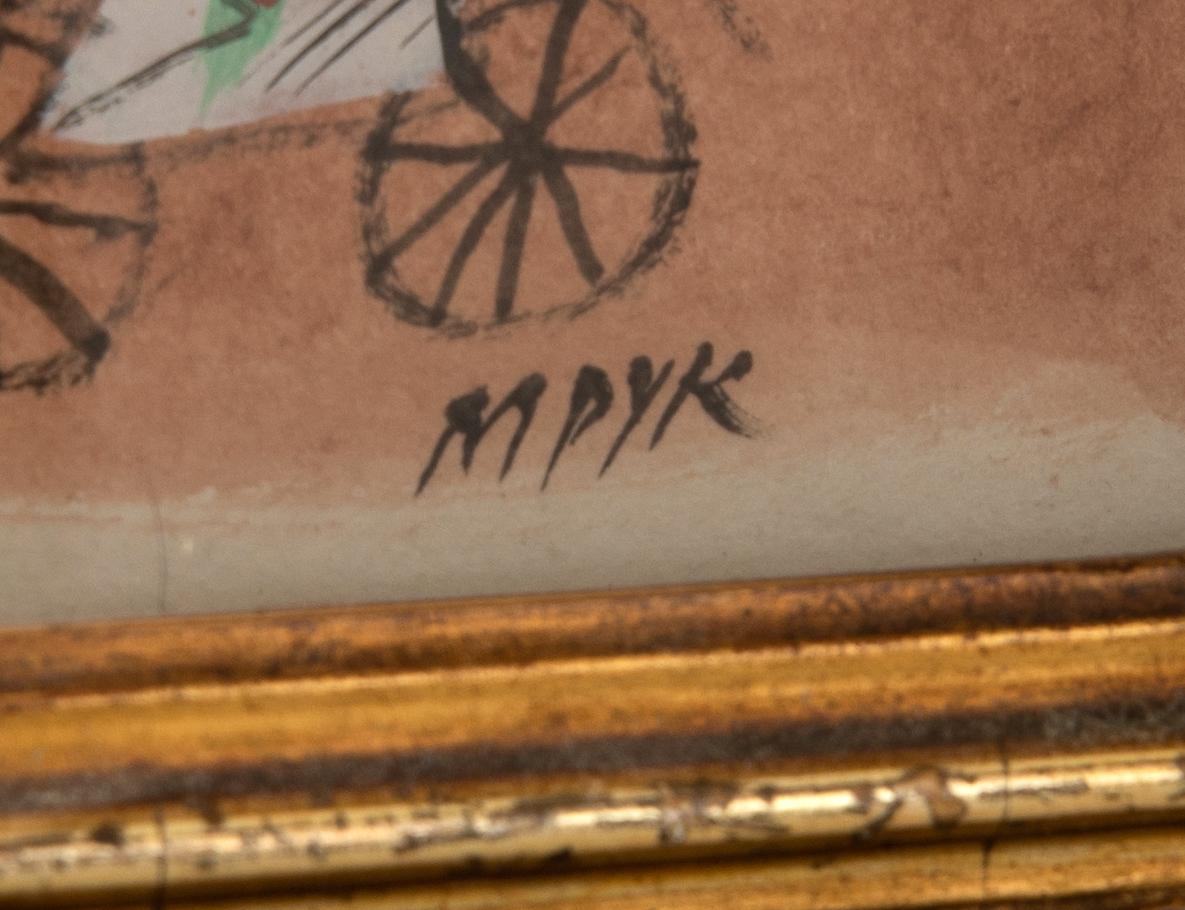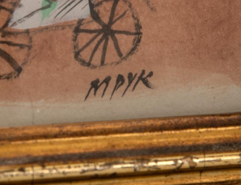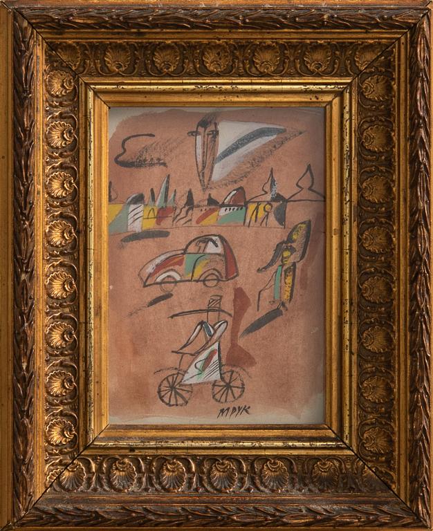 Signed M PYK, mixed media on paper, image area approx. 9 x 14 cm