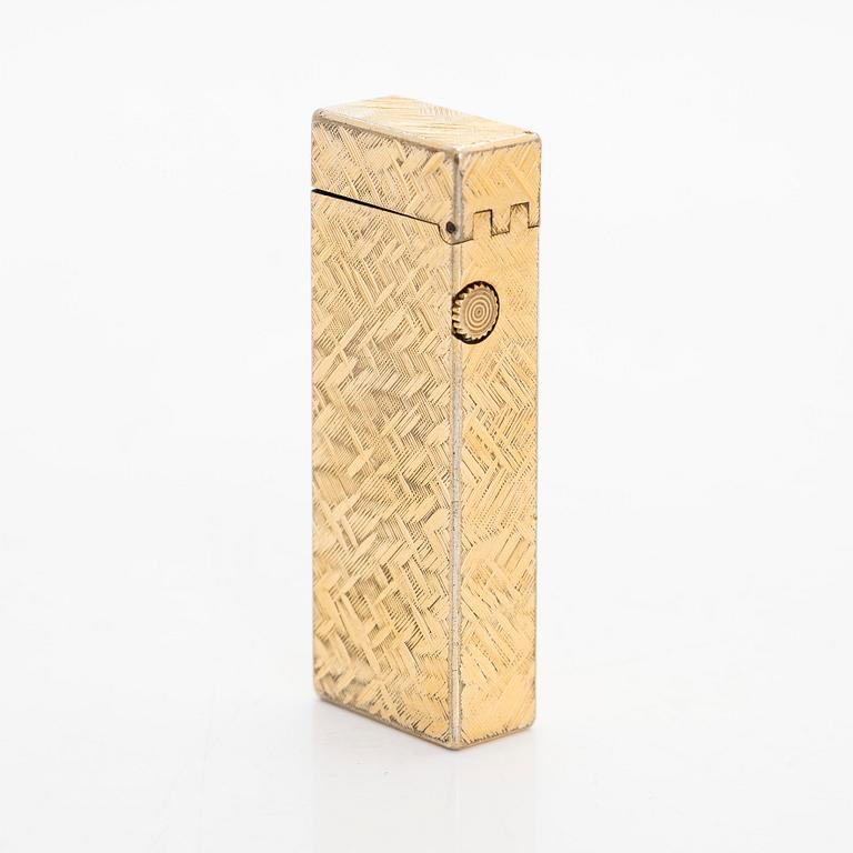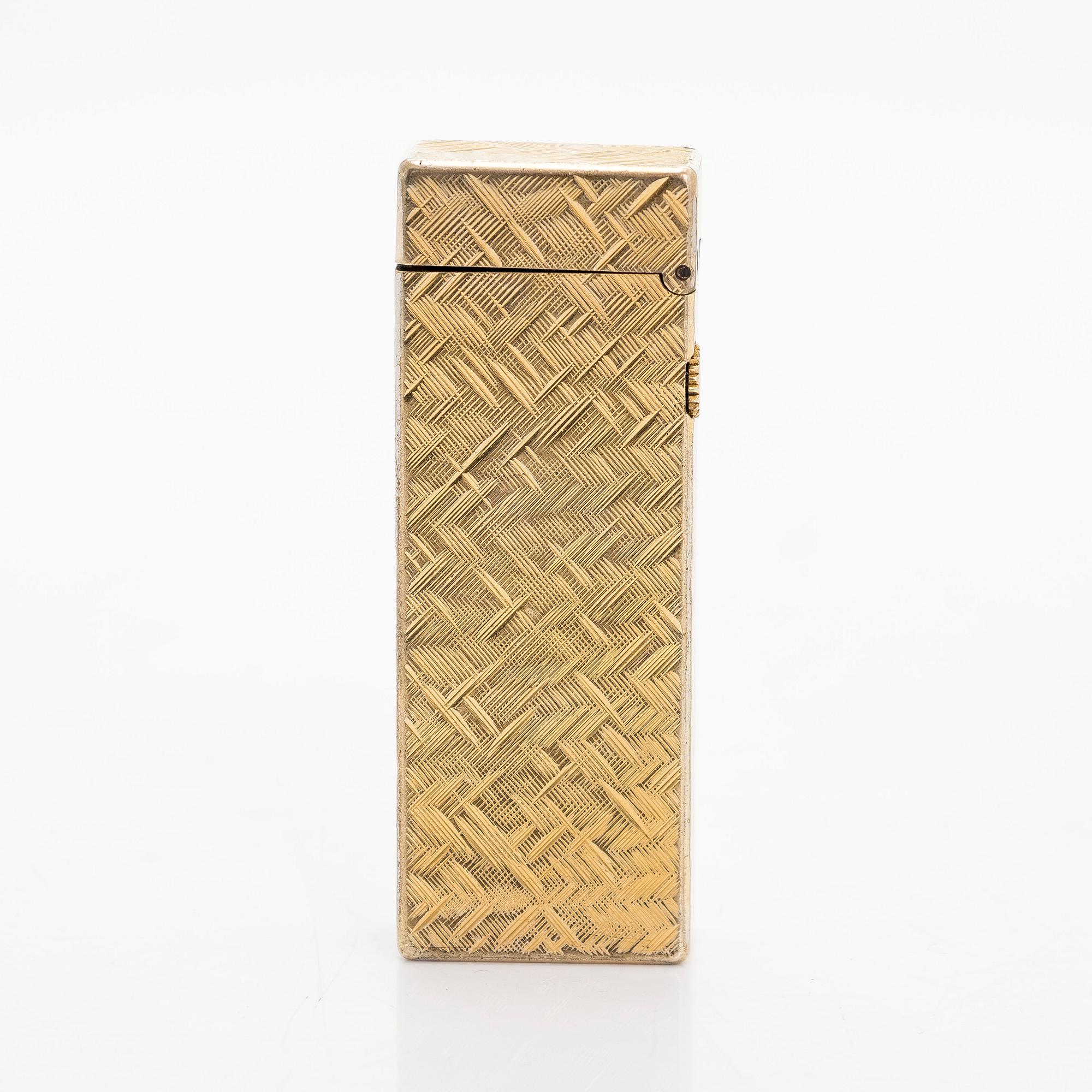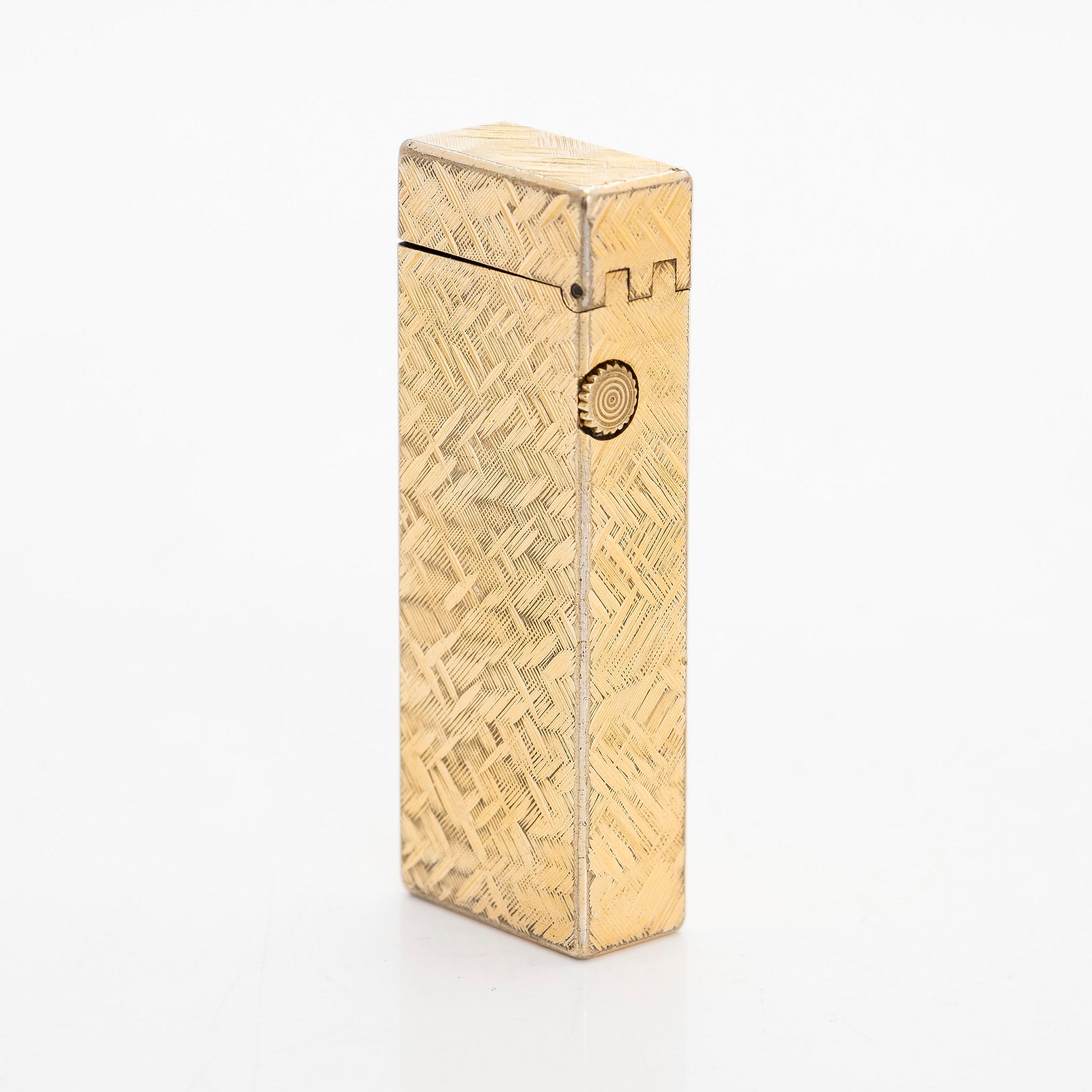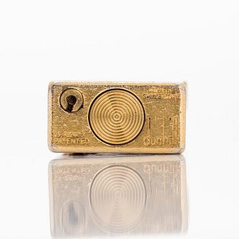 Kullattu metalli, merkitty "MADE IN SWITZERLAND" ja US patented. Noin 23x12x64 mm.