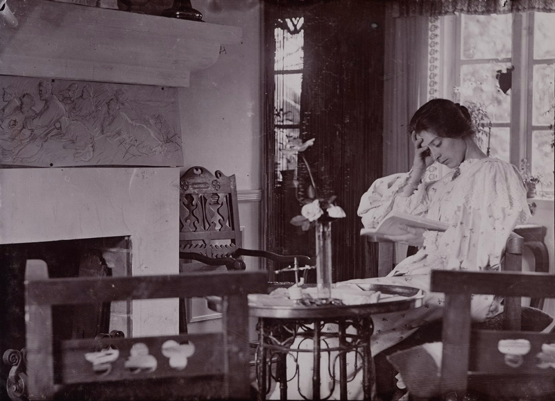 Photo: P.S. Krøyer, Marie Krøyer Reading by the Fireplace, 1890s. Collodion, 130 × 178 mm, Skagens Museum.