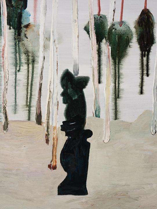 In Mamma Andersson’s painting “Många träd i skogen stå”, memories, moods, and fragments of imagery merge into a new reality.