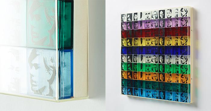 "Portrait of the artists" from "Ten from Leo Castelli", silkscreen on 100 coloured styrene boxes, 1967, with incised initials in the lower blue box with Warhol's portrait, numbered 168/200. Estimate: 200 000 – 250 000 SEK. The work will be sold at Important Spring Sale on 3–4 June and on view 28 May –2 June at Berzelii Park 1 in Stockholm, Sweden.