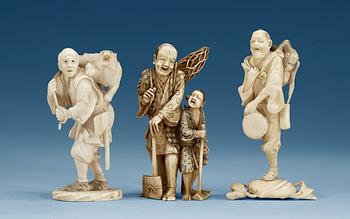 1500. OKIMONO, tre stycken, ben. Japan, omkring 1900.