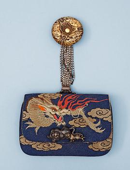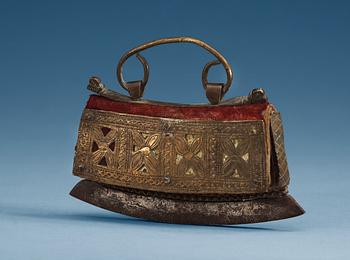 1507. ELDSTÅL med REDSKAP, metall samt textil. Qing dynastin.