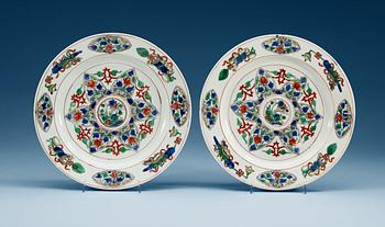 1542. TALLRIKAR, ett par, porslin. Qing dynastin, Kangxi (1662-1722).