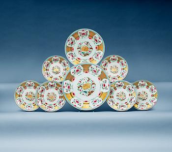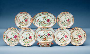 1571. SERVISDELAR, nio stycken, kompaniporslin. Qing dynastin, Qianlong (1736-95).