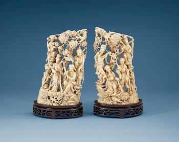 1496. SKULPTURER, ett par, elfenben. Sen Qing dynasti, tidigt 1900-tal.
