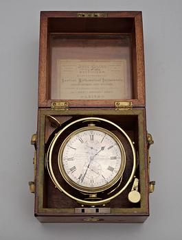 Två dagars (48 timmar). Fodral av mahogny, handtag och beslag av mässing samt märkt med benskyltar ”Parkinson & Frodsham London” och ”2231”. Urtavlan märkt ”Parkinson & Frodsham Change Alley London 2231”. Försilvrad urtavla diam 8,5 cm. Lådans höjd 17,5 cm. Nyckel märked "P & F" medföljer.