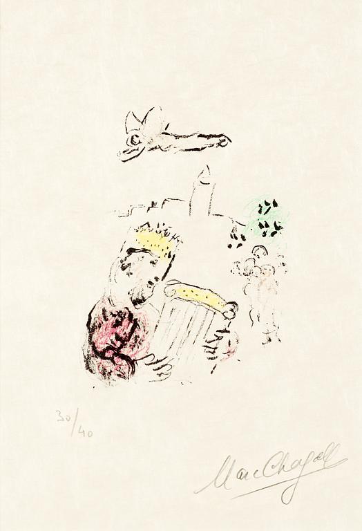 Den vitryske konstnären Marc Chagall är en av den moderna konstens förgrundsgestalter med ett bildspråk inspirerat av expressionism, kubism och futurism. Hans sätt att omgestalta verkligheten förebådade surrealismen. Chagall var verksam som målare och grafiker. 1906 började han studera för Yehuda Pen för att några månader senare flytta till Sankt Petersburg och börja studera på kejserliga konstföreningens skola under ledning av Nikolaj Roerich. Under vistelsen i Sankt Petersburg kom Chagall i kontakt med modernismen, som senare tog honom till Paris 1910. I Paris influerades han av de nya strömmingarna med konstnärer och poeter som Max Jacob, Roger La Fresnaye och Robert Delaunay. Chagall blev indragen i ryska revolutionen, och det sovjetiska kulturministeriet utsåg honom till kommissarie för bildkonst i Vitebsk Arts College. Under 2:a världskriget flydde familjen till Paris, samt under en kortare period i USA för att 1949 återvända till Frankrike där han senare avled 1985. Marc Chagall är en virtuos, en av världens mest kända konstnärer och i hans universum upptäcker man ett spektrum av känslor från den djupaste sorg till den största glädjen.