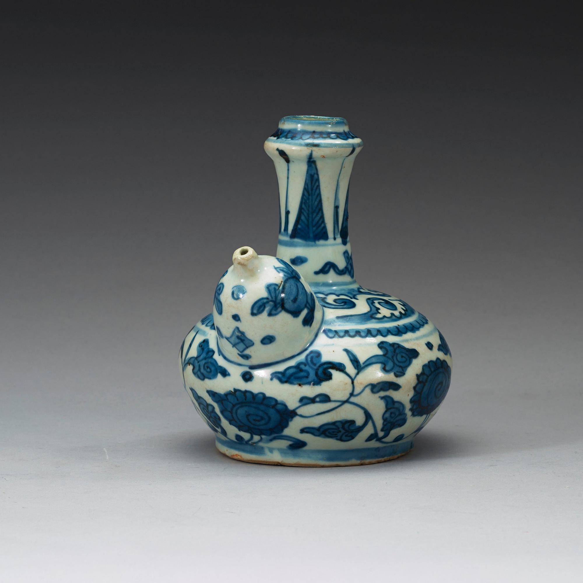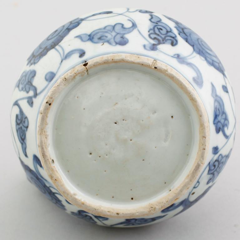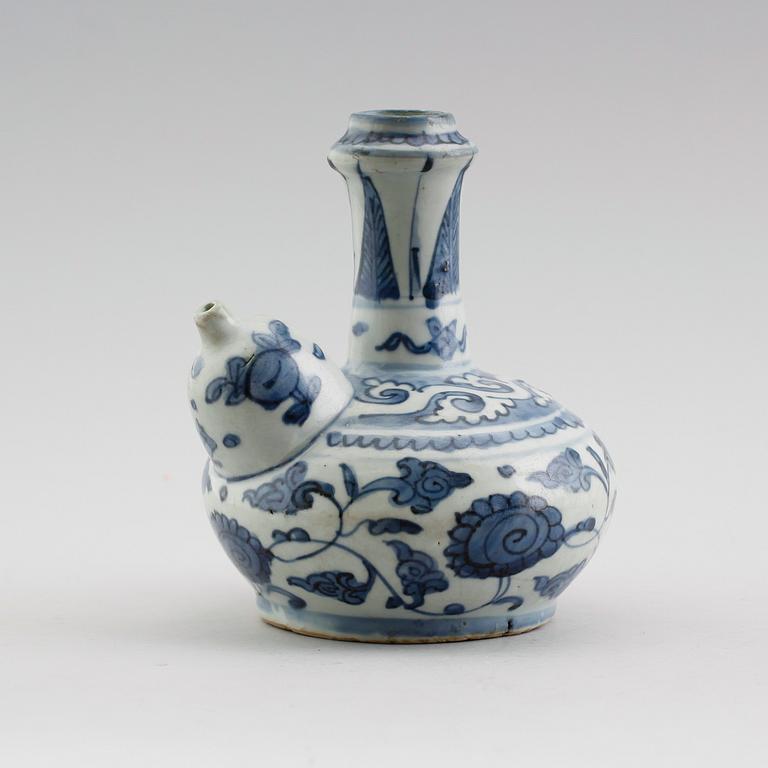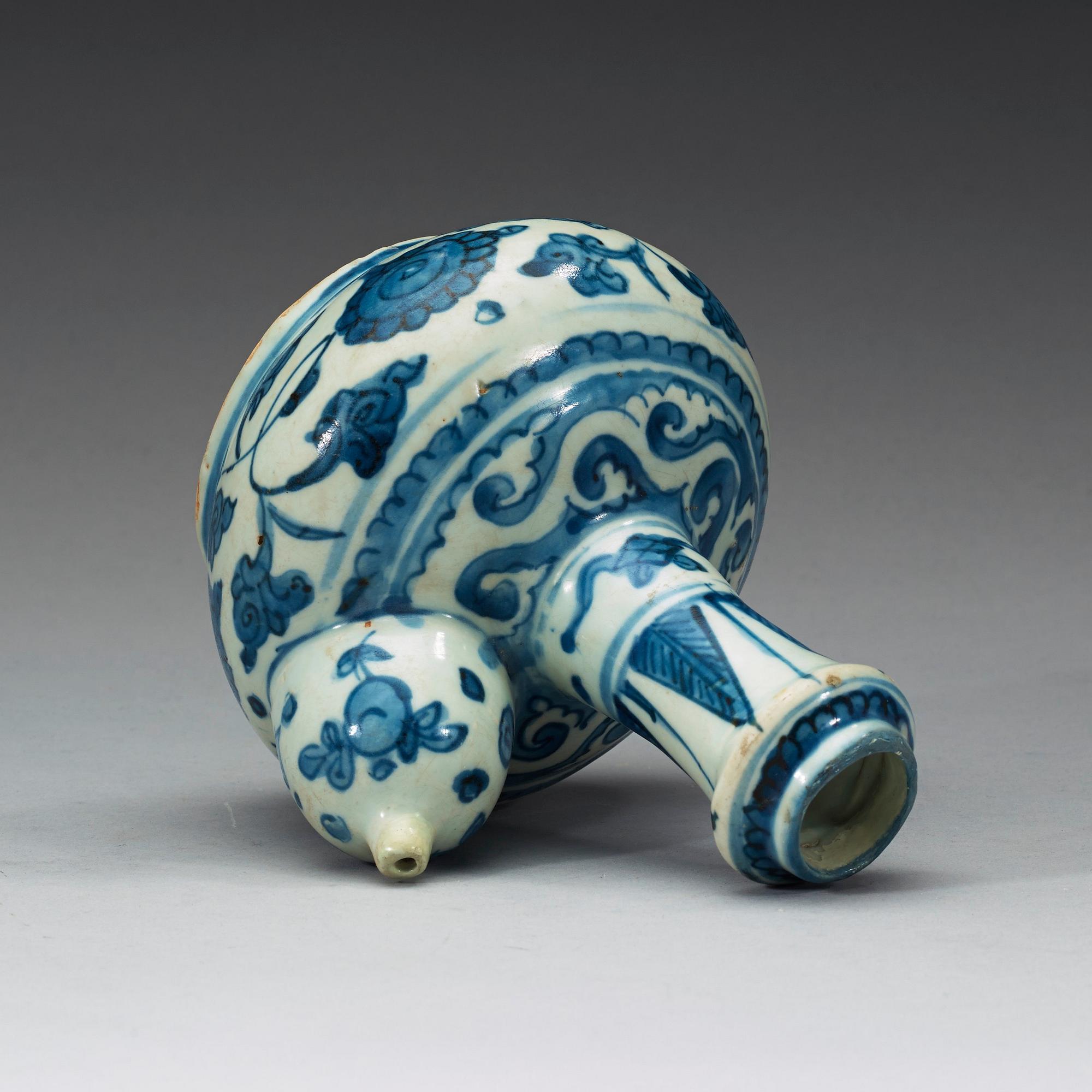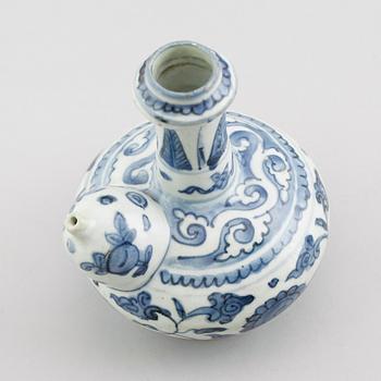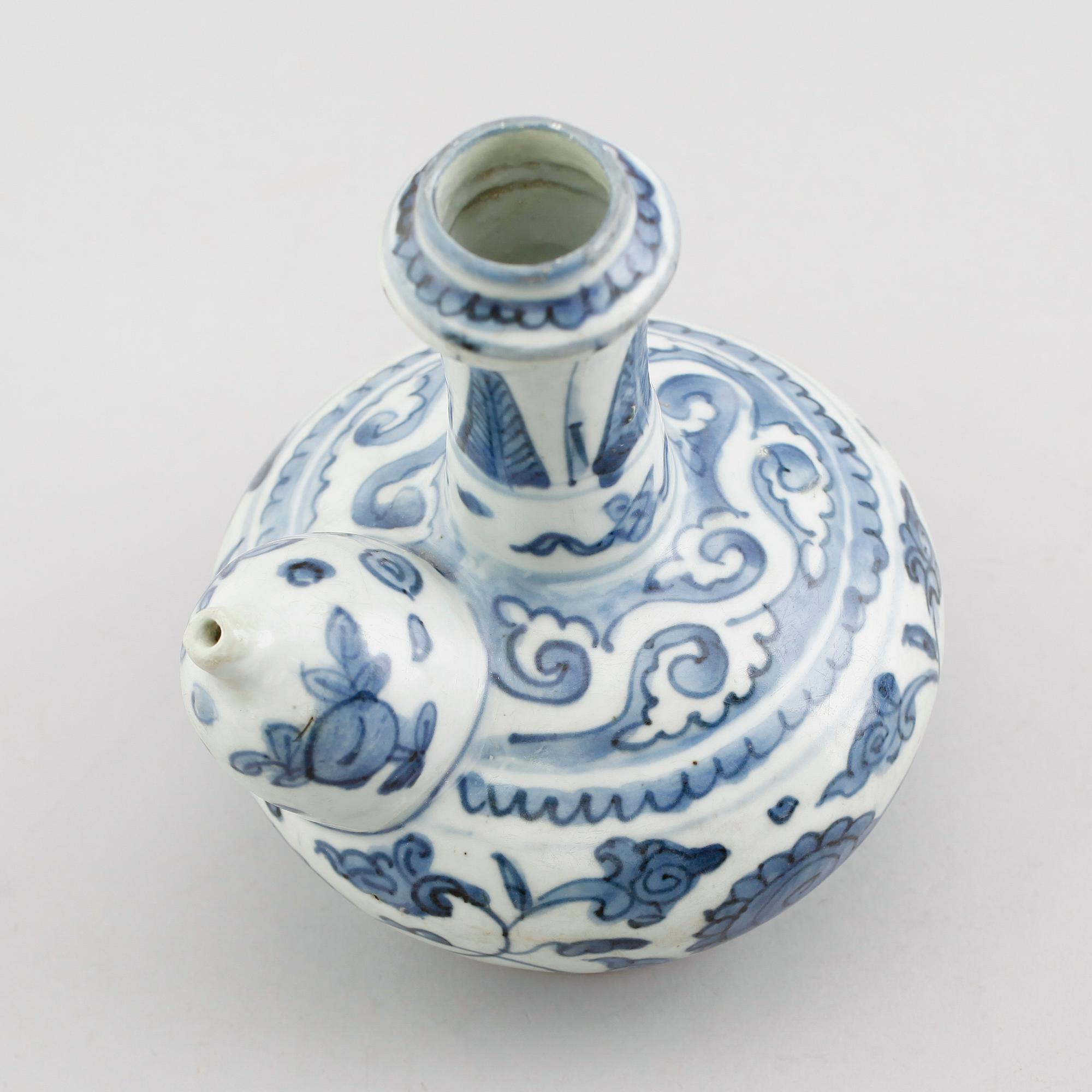 Dekor i underglasyr blått av växter. Höjd 18 cm.
