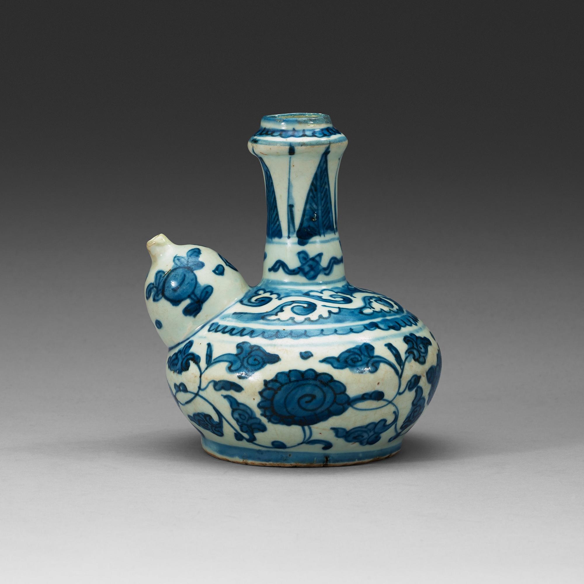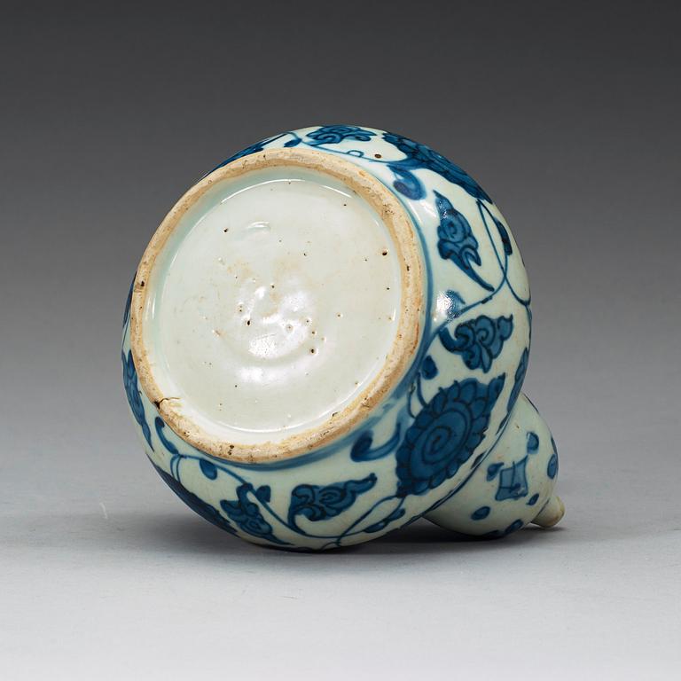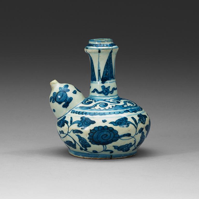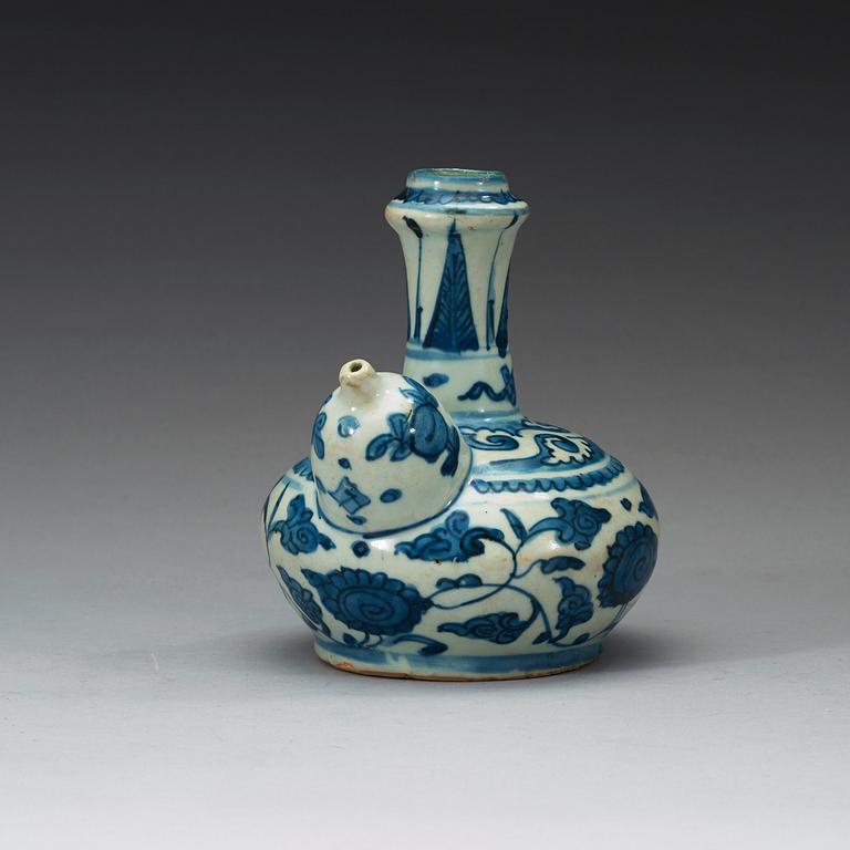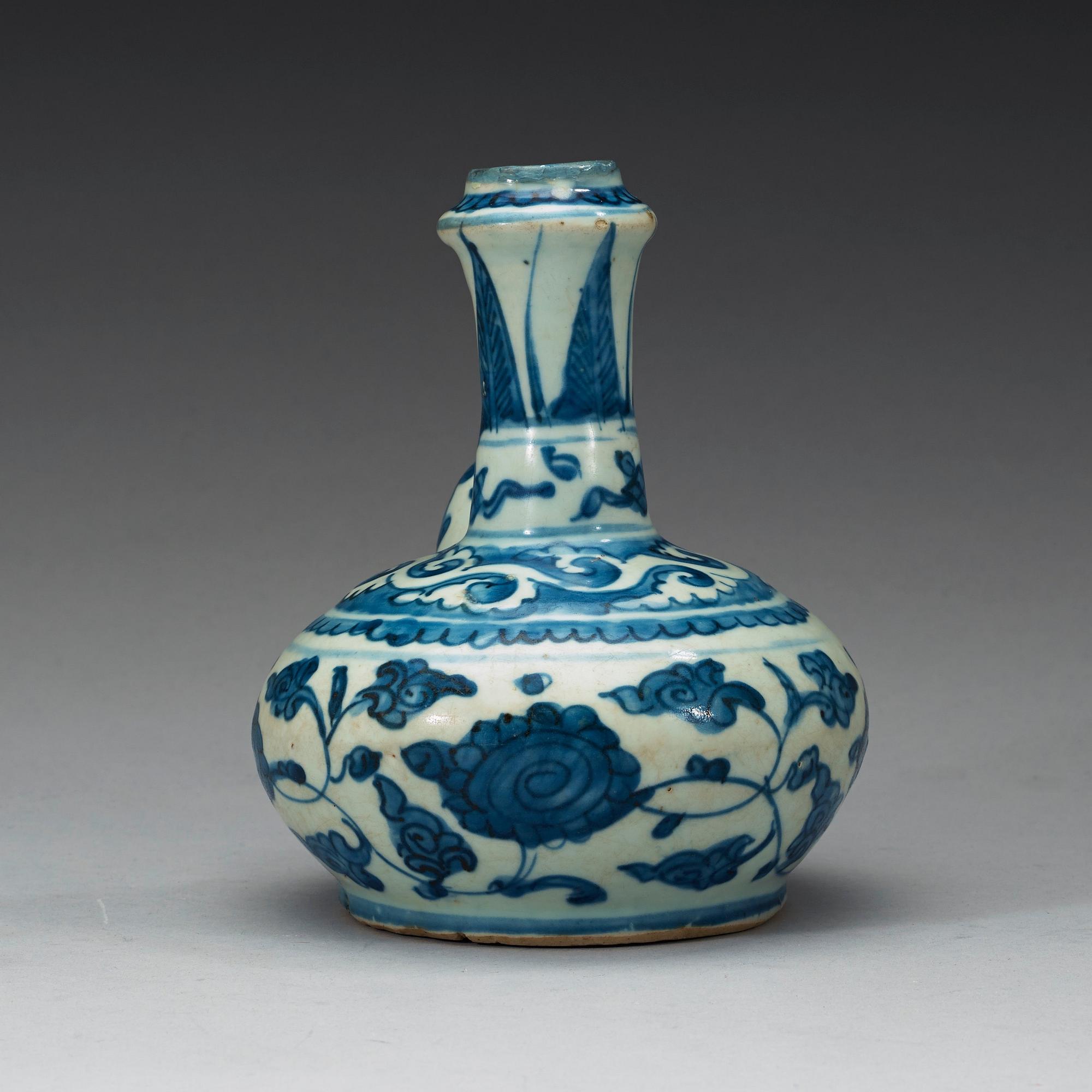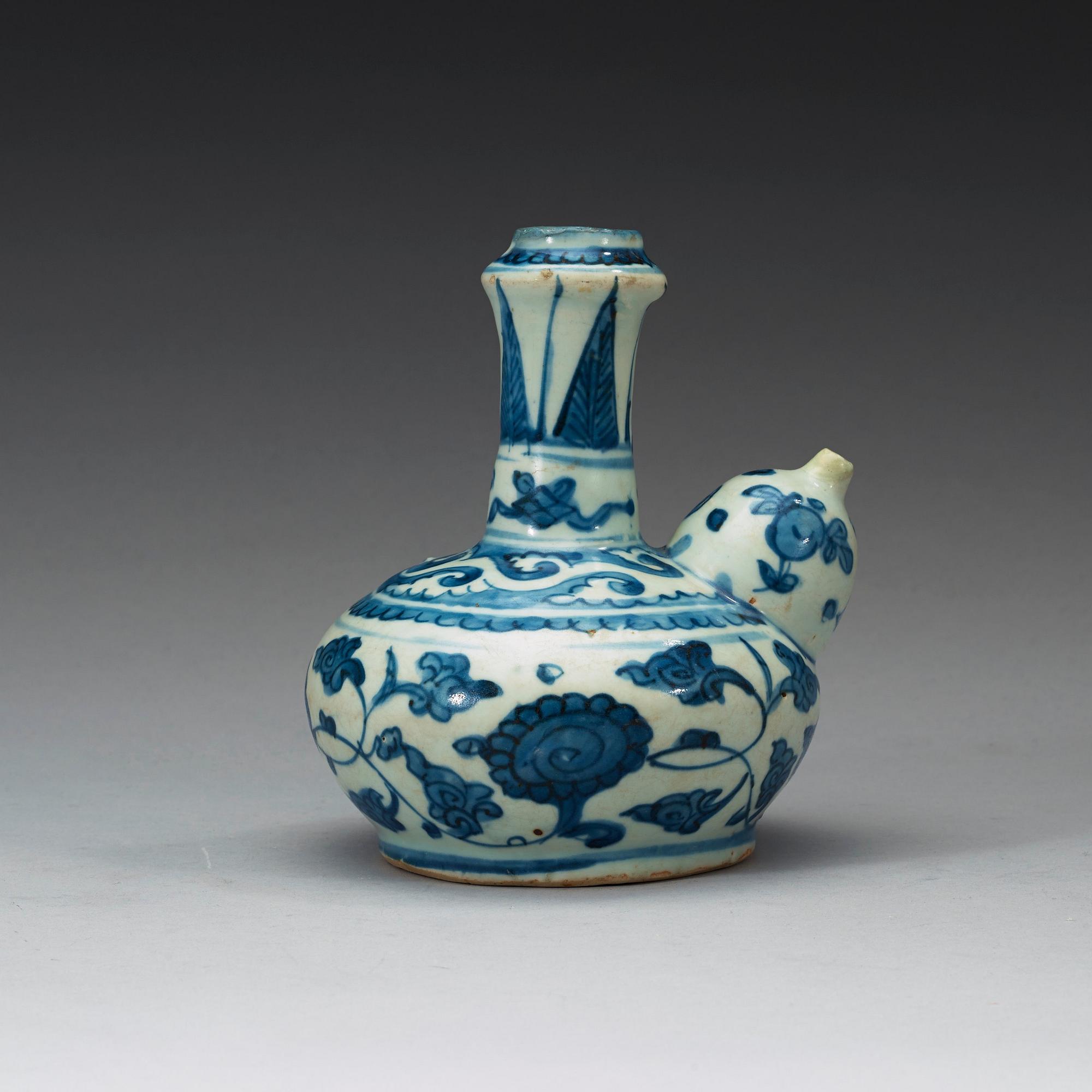Dekor i underglasyr blått av växter. Höjd 18 cm.