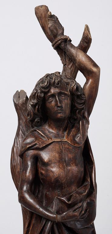 Skulpterat trä föreställande Sankt Sebastian. Höjd 98 cm.