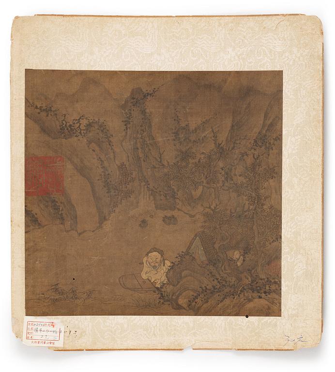 Tusch och färg på siden. Ett rött sigill. 23,2 x 24 cm.