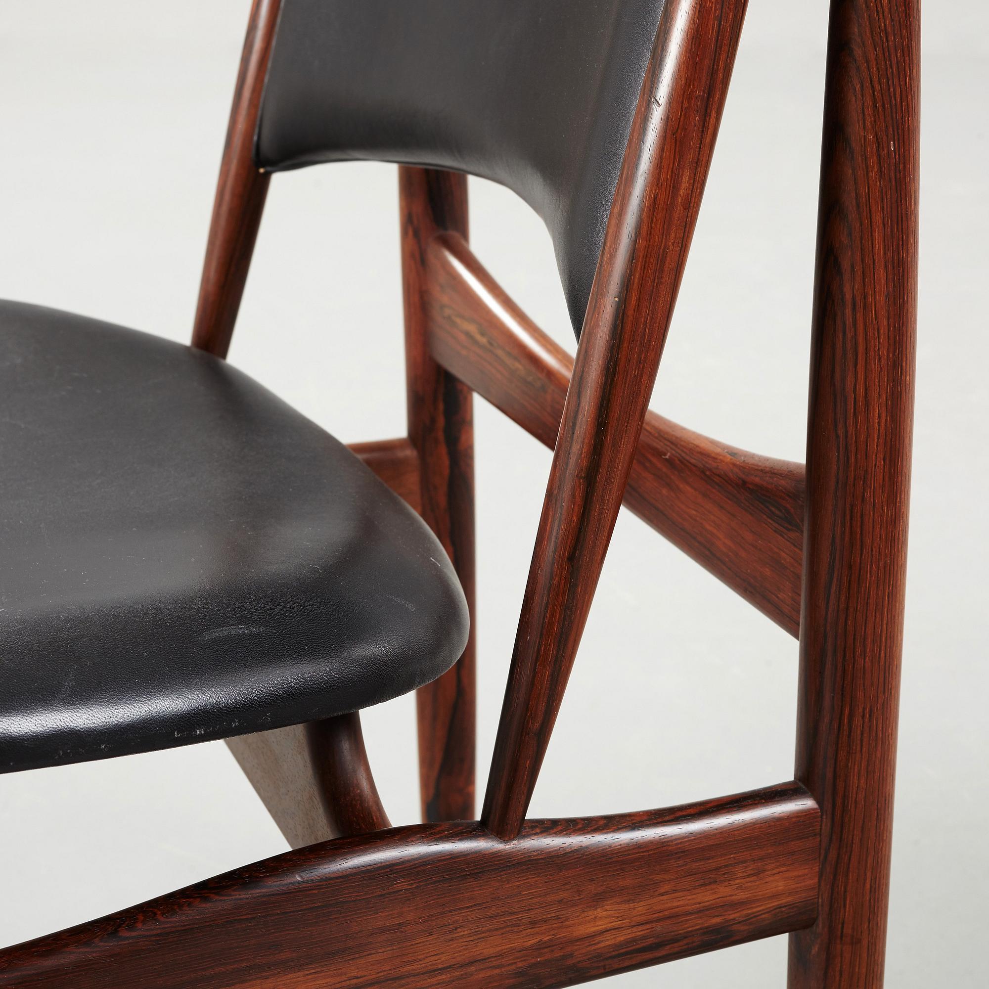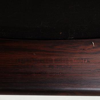 Palisander och svart originalklädsel, märkta med snickarmästare Niels Vodders stämpel, CABINETMAKER NIELS VODDER DENMARK DESIGN BY FINN JUHL.