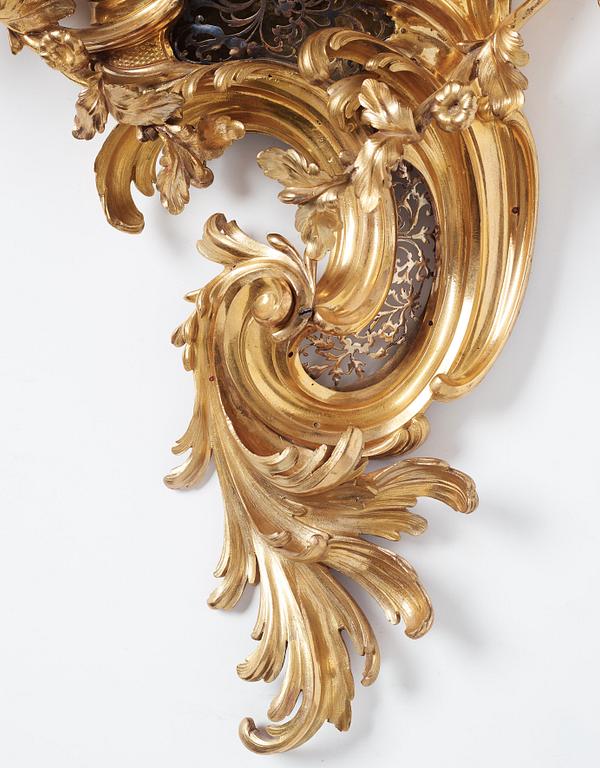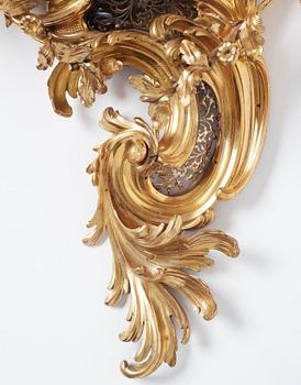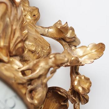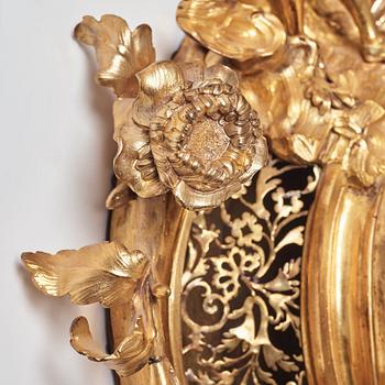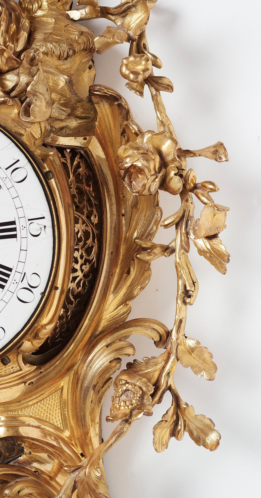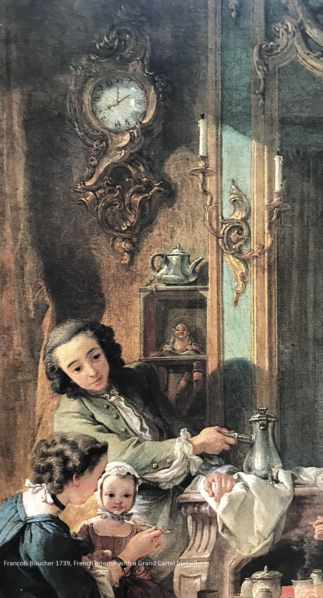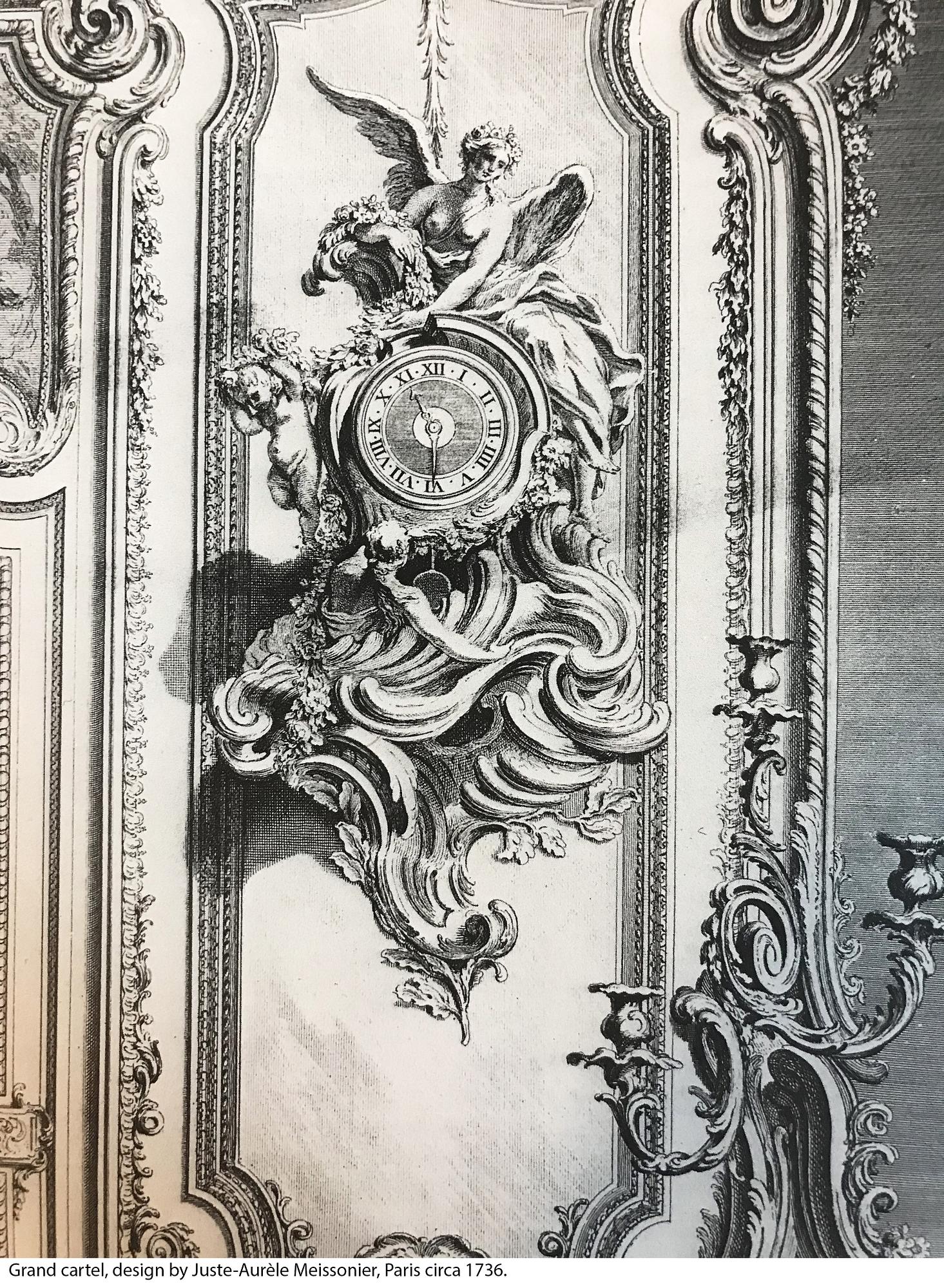 Katalognumret är en ypperlig representant för den franska rokokon på 1730-50-talen. Den lekfulla och naturälskande rokokon var en reaktion på den stränga barocken som hade dominerat det franska konstlivet under Ludvig XIV långa regeringstid. Rokokon (Louis XV) var till stora delar en inredningsstil, som med sitt asymmetriska formspråk, bröt mot den förutvarande klassicismen. Naturen var en stor inspirationskälla och föremål såsom bords- och väggur, speglar, ljuskronor och möbler dekorerades med blommor och bladverk i olika material. En helhetsverkan uppnåddes genom att den fasta vägginredningen utformades i samma stil, med bladverk och blommor som illusoriskt klättrade längs väggarna.