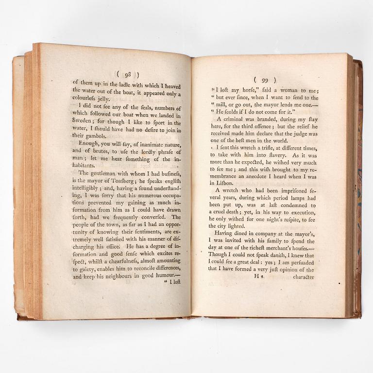 Printed for J. Johnson St Paul's Church-Yard, London 1796. Reseskildring. Nött ungefär samtida halvfranskt band.