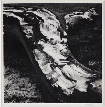 Signerad Ansel Adams på monteringen. Fotografens Hasselbladsstämpel a tergo montering. Silvergelatinfotografi monterad på kartong, bildyta 24 x 24 cm.
