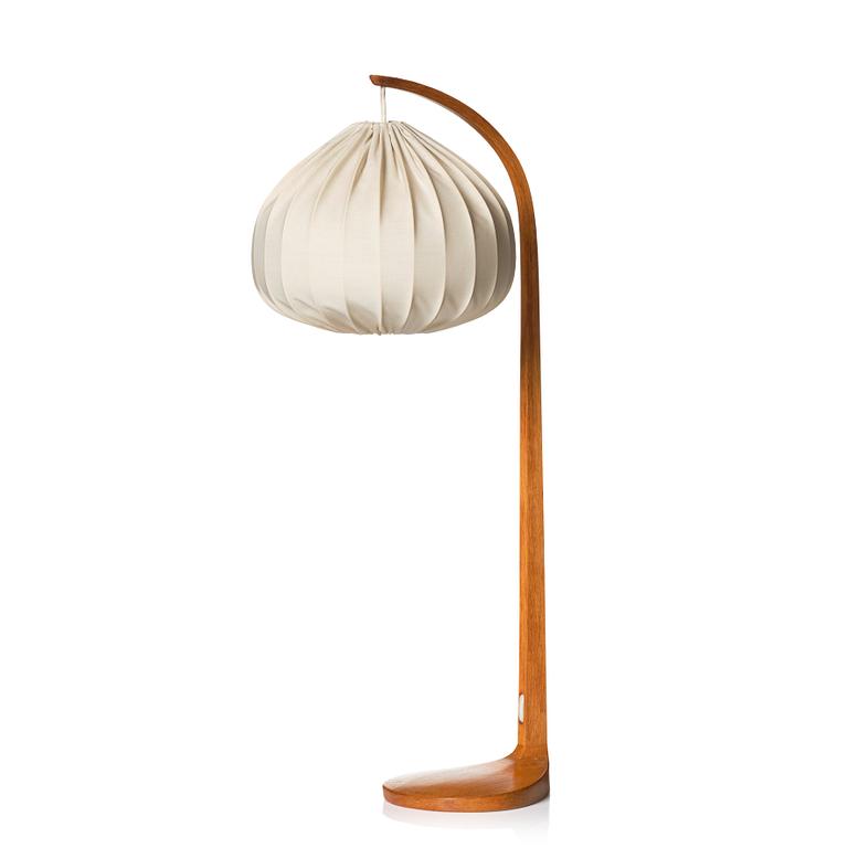 Mattbonad ek, skärm klädd i textil, etikettmärkt Hans Agne Jakobsson AB, Markaryd, höjd 64 cm.