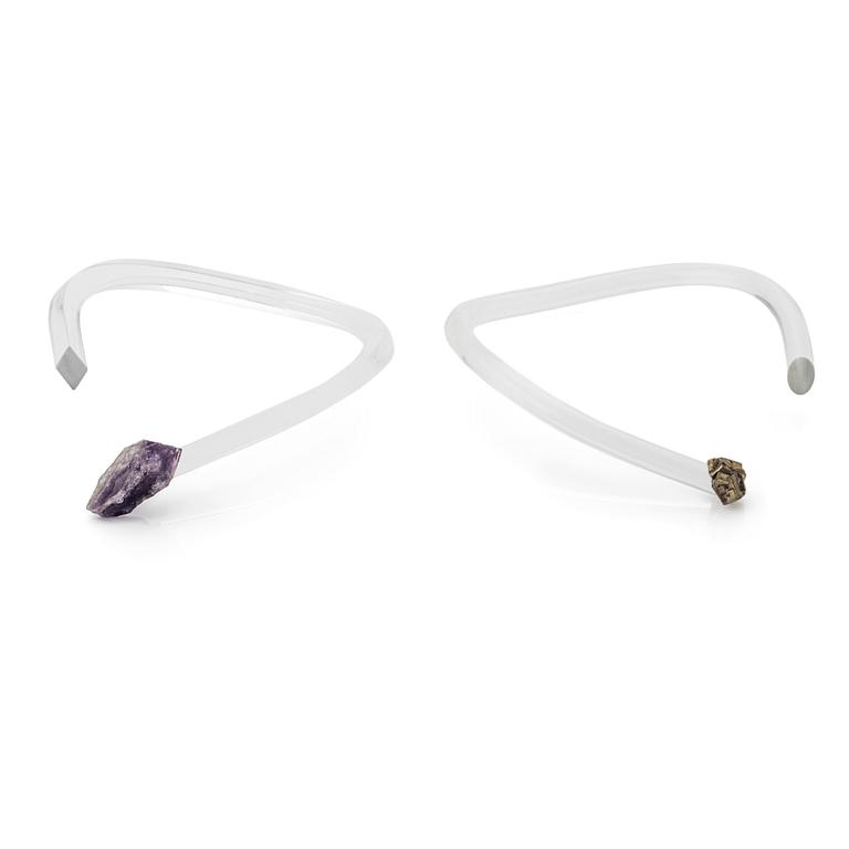 två stela collier, akrylplast med ametist och pyrit, ca 1970-tal.