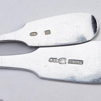 Fiolmodell. Sammansatt bestickuppsättning med olika tillverkare, Sazikov, Morosov, Nichols och Plink m.fl, S:t Petersburg och Moskva 1874-1917.