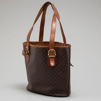 Monogrammönstrad canvas med detaljer i läder och guldfärgad metall. Invändigt fodrad i skinnimitation. Tre fack, varav ett med dragkedja. Märkt "CELINE PARIS MADE IN ITALY". 24 x 24 x 12 cm.
