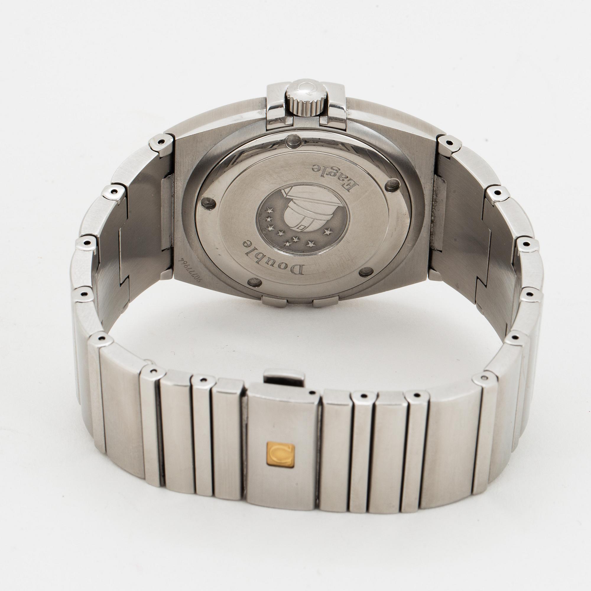 stål, quartz, safirglas, datum, integrerad originallänk, viklås, ca 2010.
