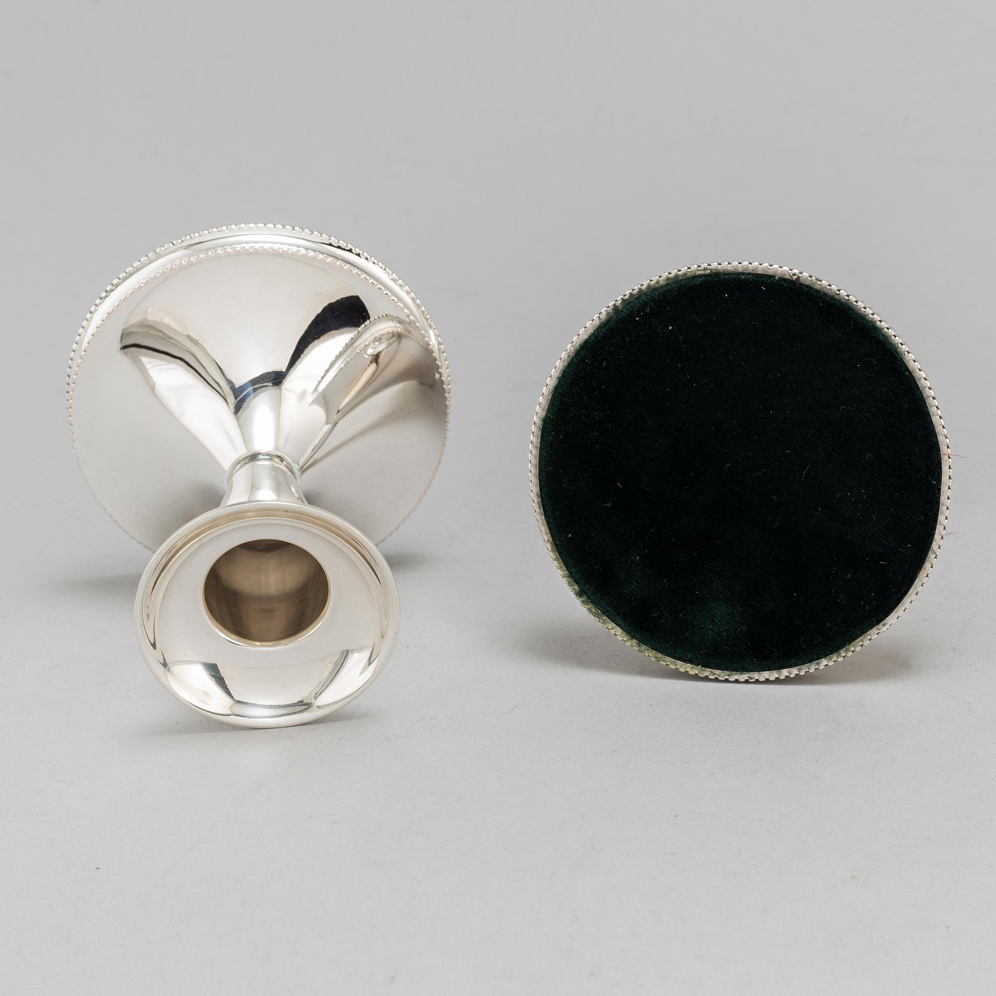 Rund fot med tandstav. Höjd ca 8,5 cm. Fylld fot.