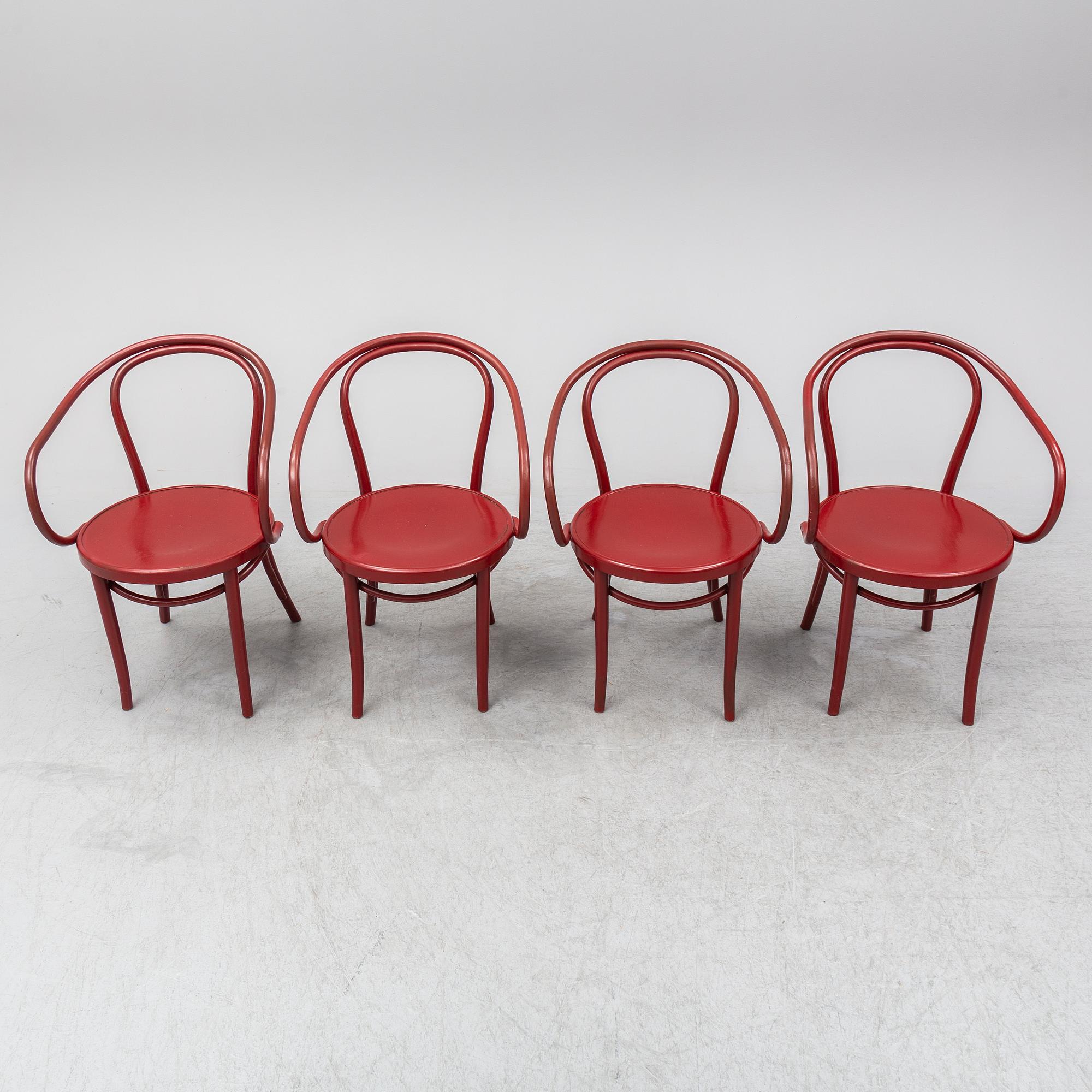 Målade karmstolar av böjträ. Sitthöjd ca 47, höjd 82 cm vardera.