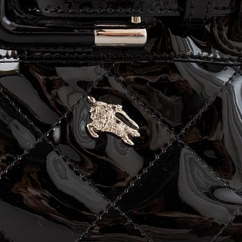 Quiltat, svart lackläder. Spännen av vitmetall. Fodrad med satin. Två innerfack med dragkedja. Märkt "BURBERRY". 28 x 20 x 13 cm. Dustbag medföljer.