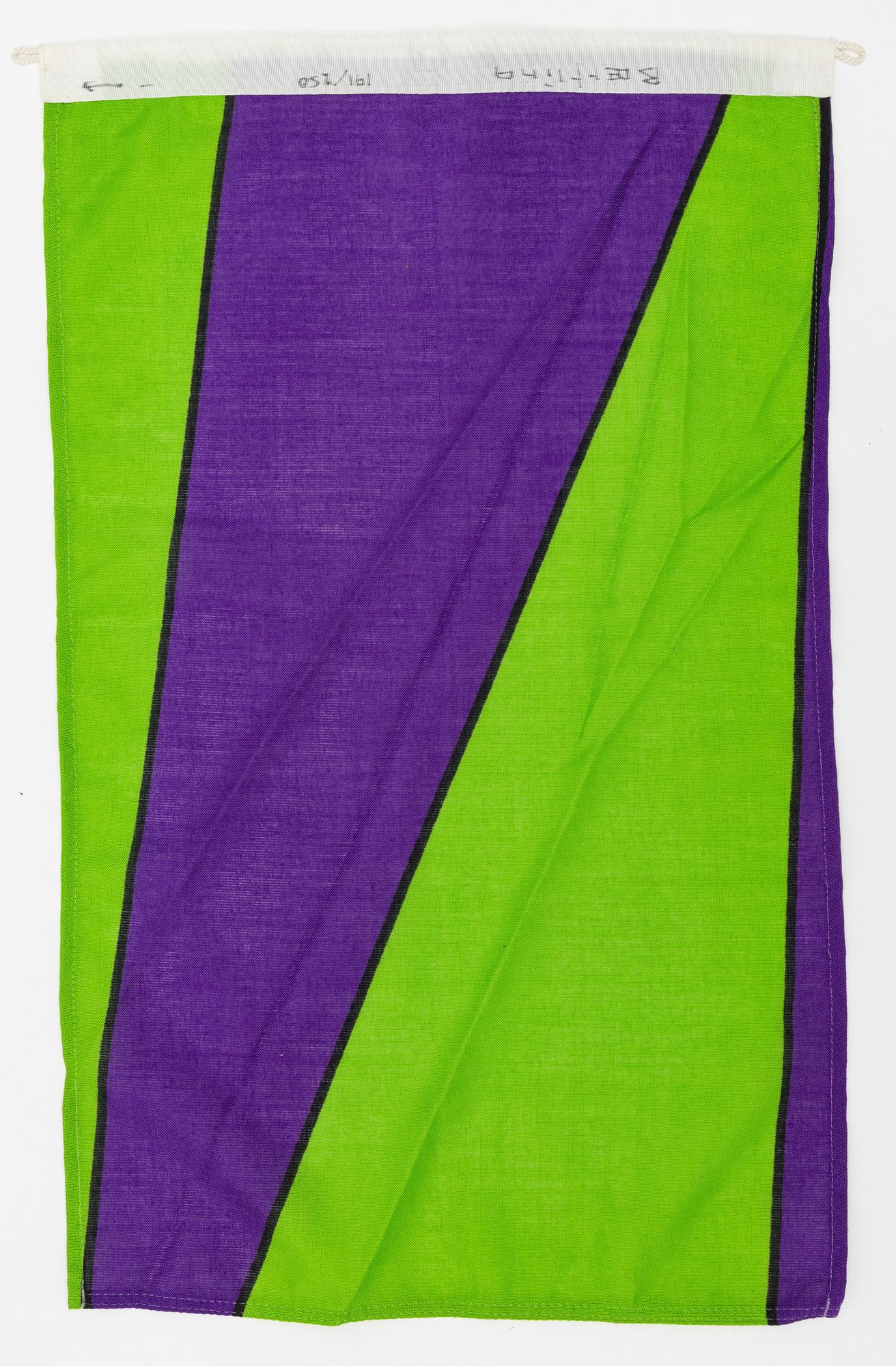 Signerad Bærtling och numrerad 191/250. Färgserigrafi på tyg (flagga) 68 x 43 cm. "Flags for America's Cup". Utgiven av Galerie Nordenhake, Malmö och Galleri Fabian Carlsson, Göteborg.