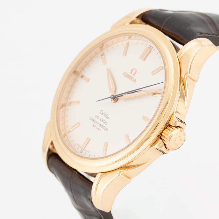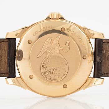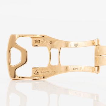 18K rödguld, automatisk, safirglas, läderband, viklås i 18K rödguld, cert, ca 2003.