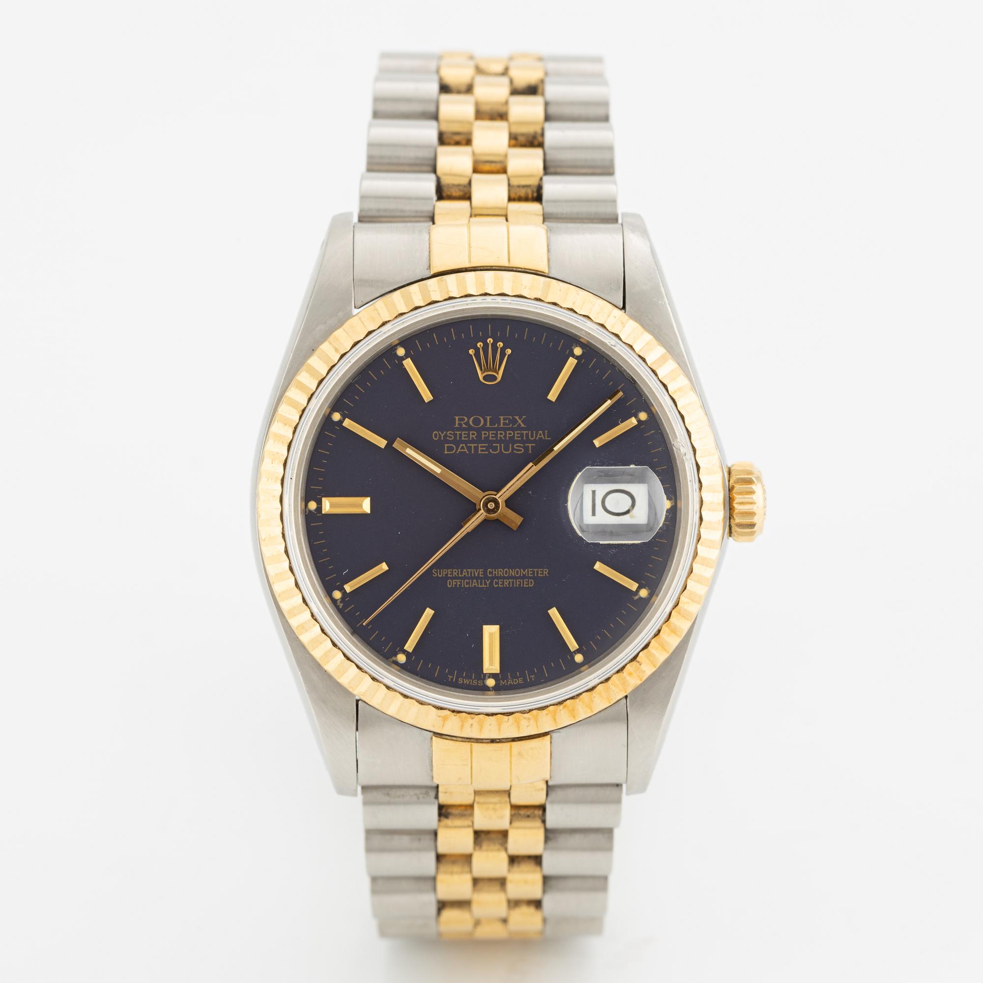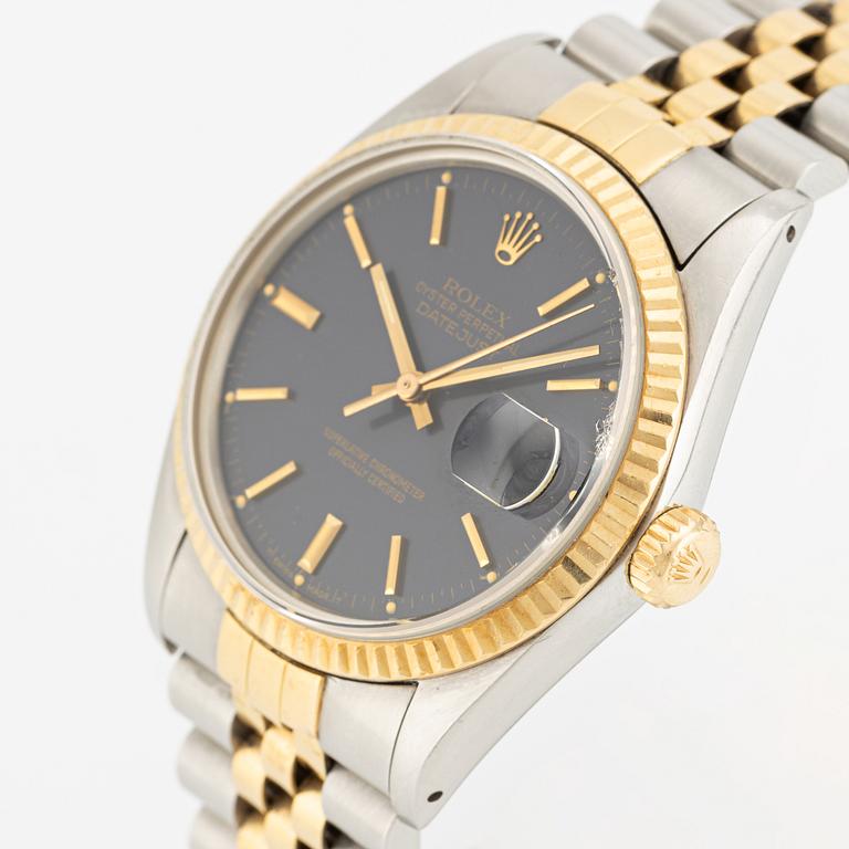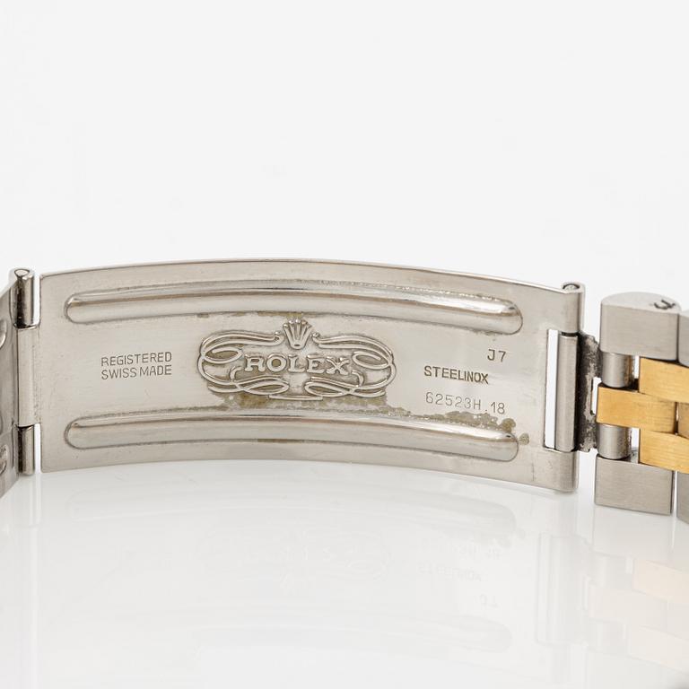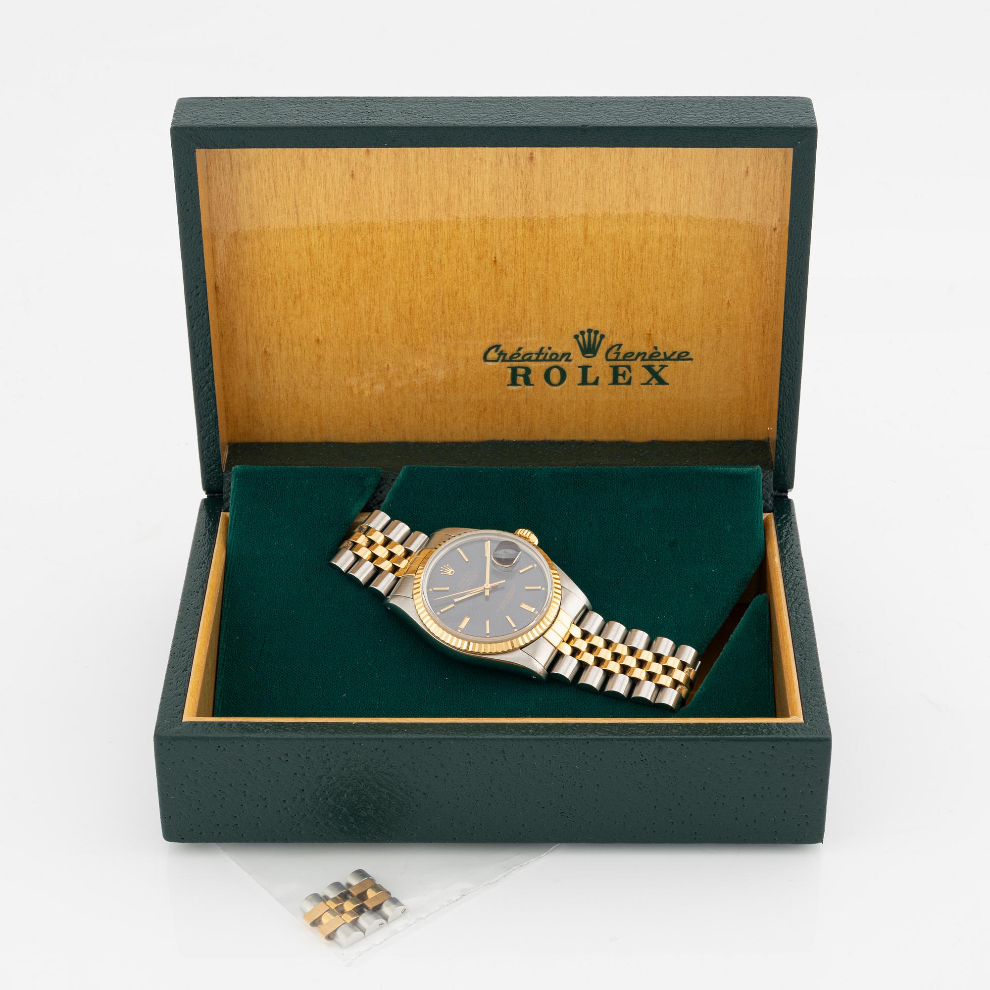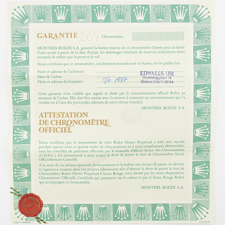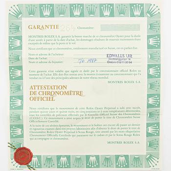 stål/guld, automatisk, plexiglas, datum, Jubileelänk, viklås, cert, juni 1987.