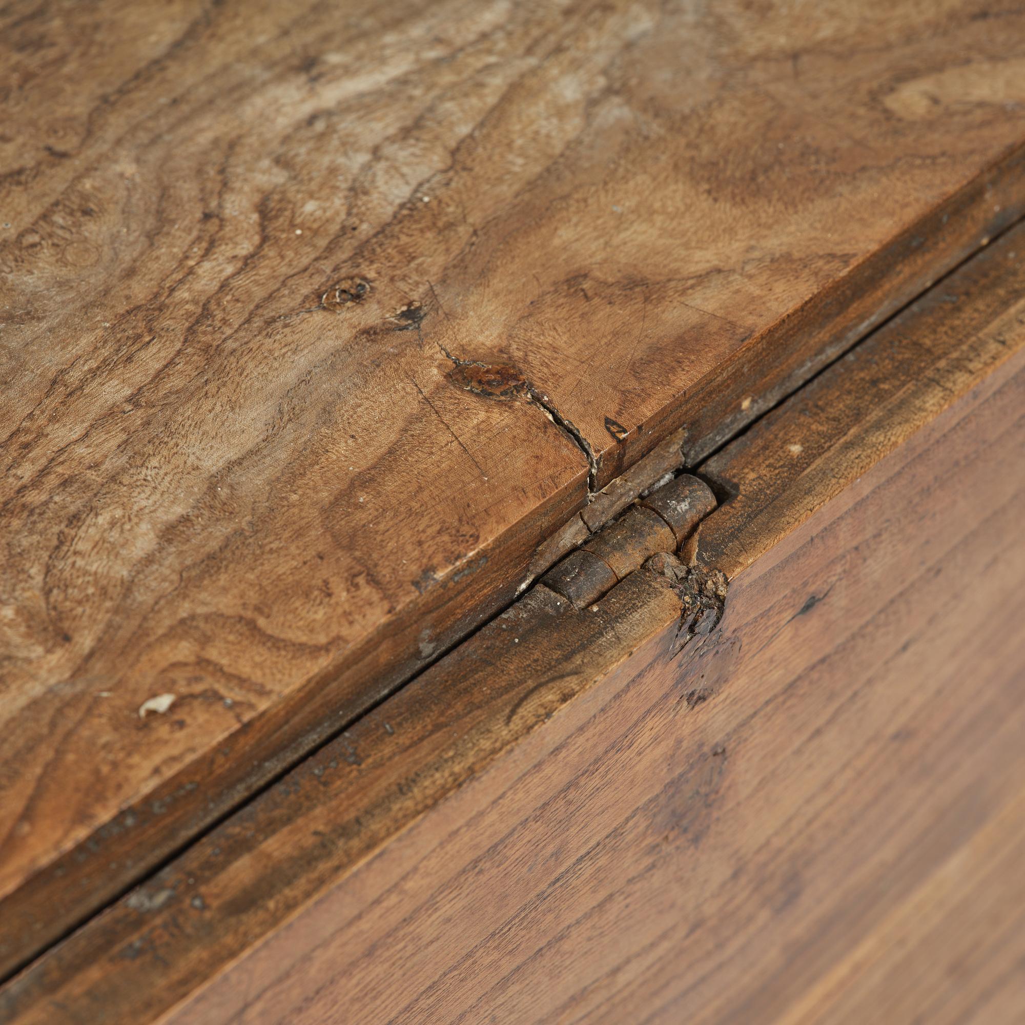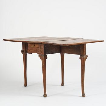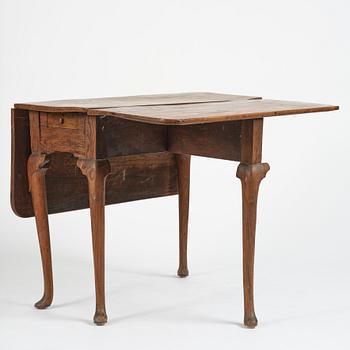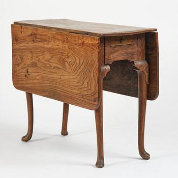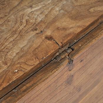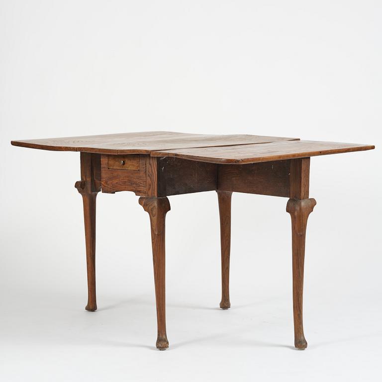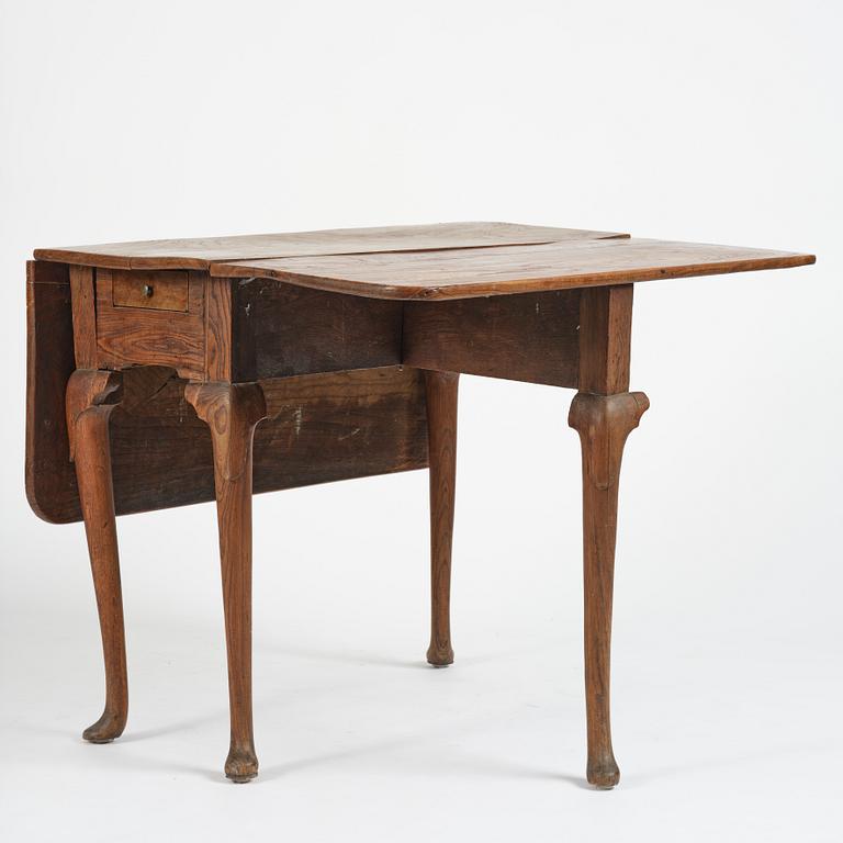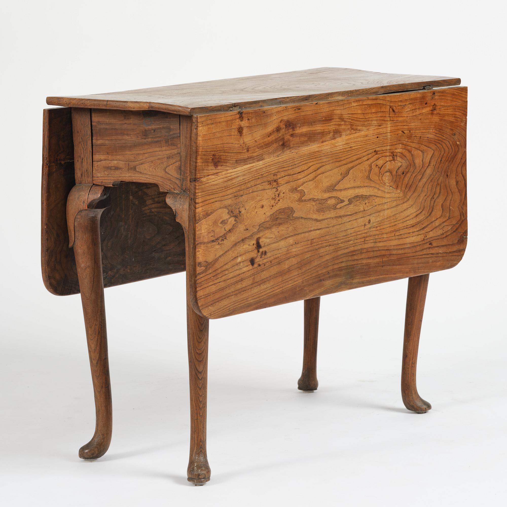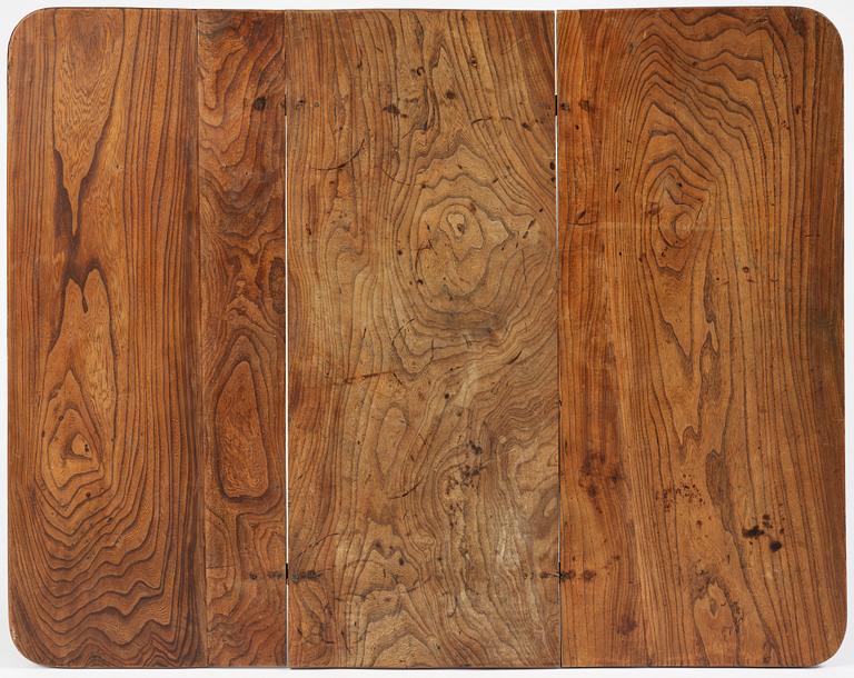 Stomme av massiv alm. Rektangulär form, konturerad sarg med en låda, lätt svängda ben med överkragade anfanger, dubbla slag och enkla grindar. Längd 37,5-116, bredd 91, höjd 74,5 cm.