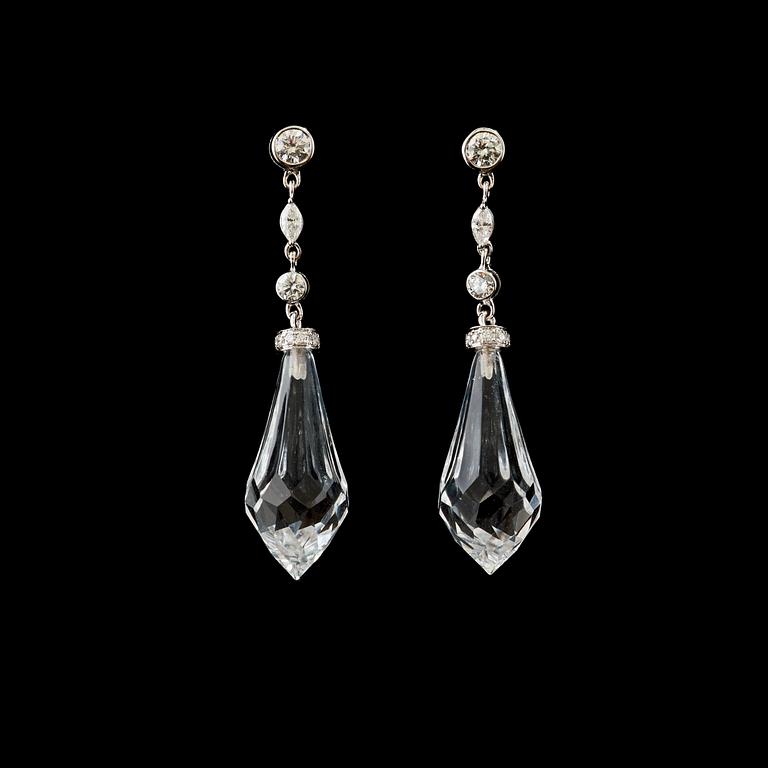 ÖRHÄNGEN, briolettslipade bergkristaller totalt 20.09 ct samt diamanter totalt 0.74ct.