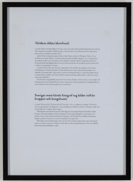LENNART NILSSON, sju stycken gelatinsilverfotografier med stämpel a tergo.