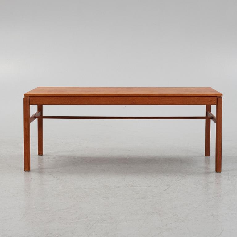 Av teak. Kopplade ben. Stämpelmärkta. Längd 100, bredd 45, höjd 40 cm.