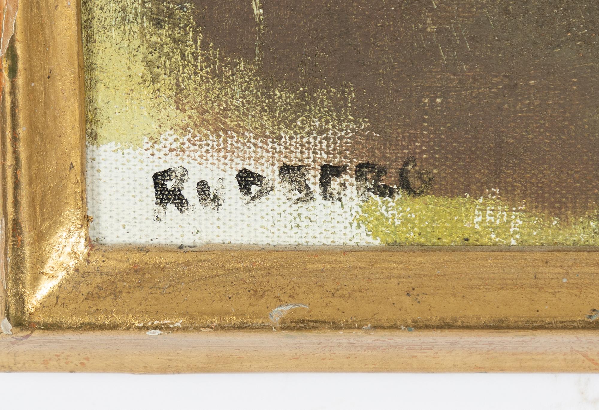 Signerad Rudberg. Duk 80,5 x 80,5 cm.