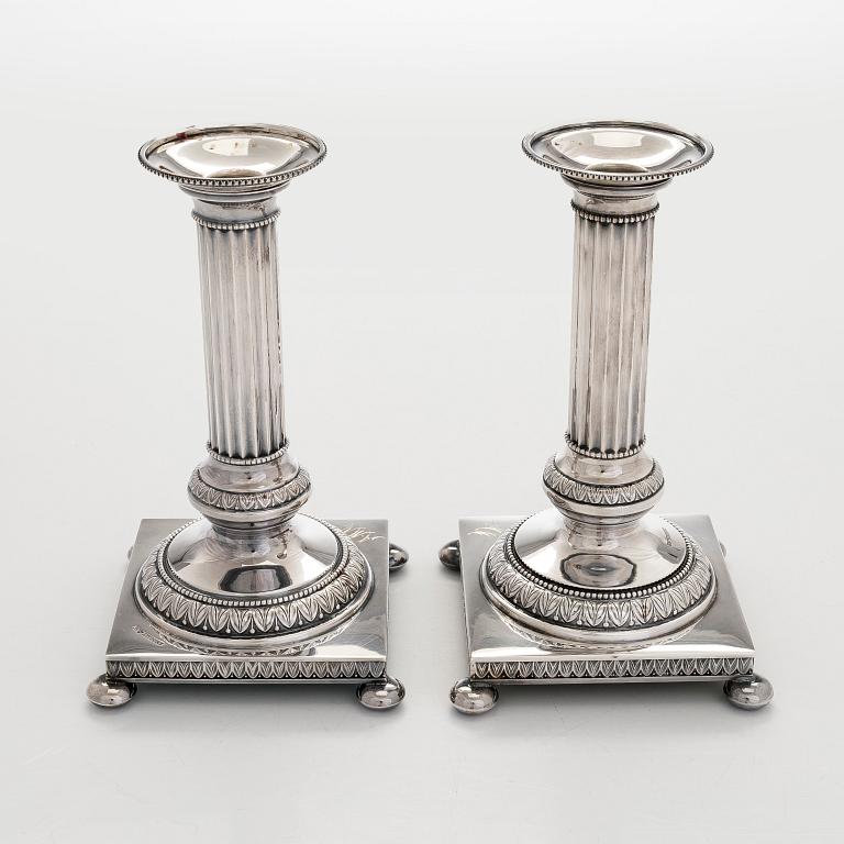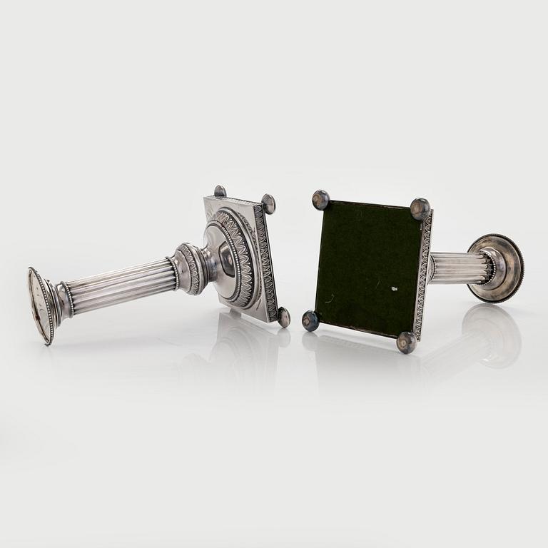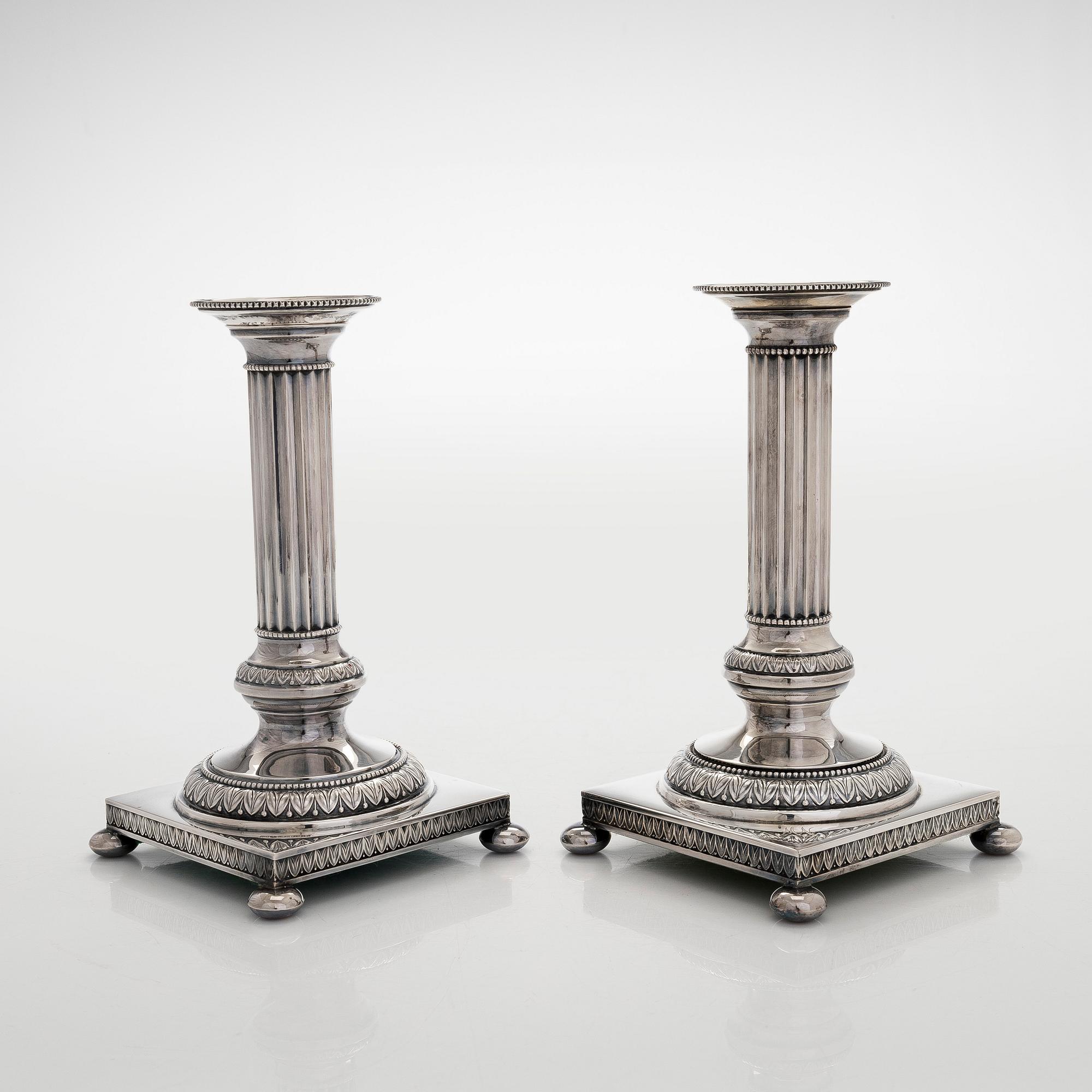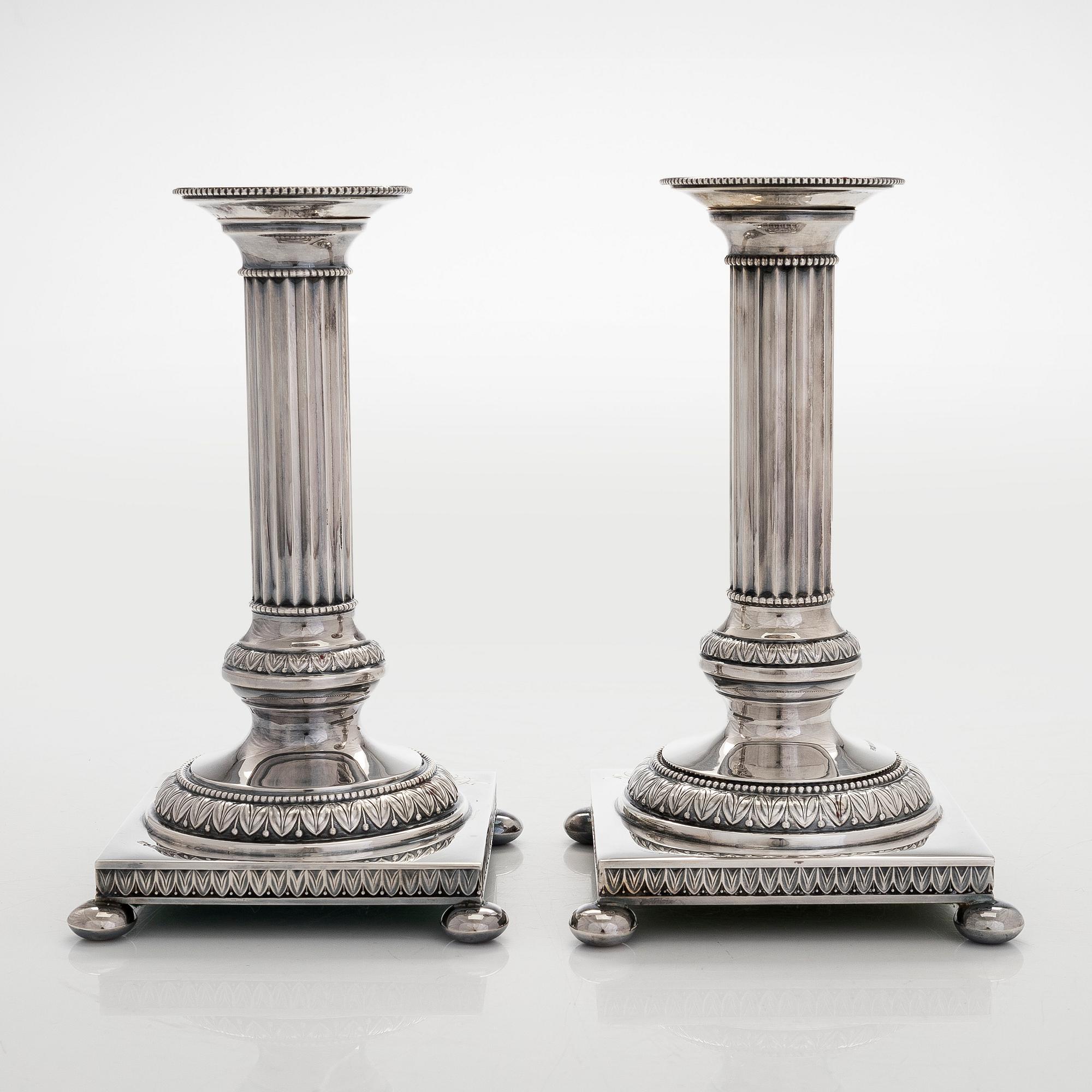 Ljusstakar, ett par, silver, Kultateollisuus, Åbo 1963.