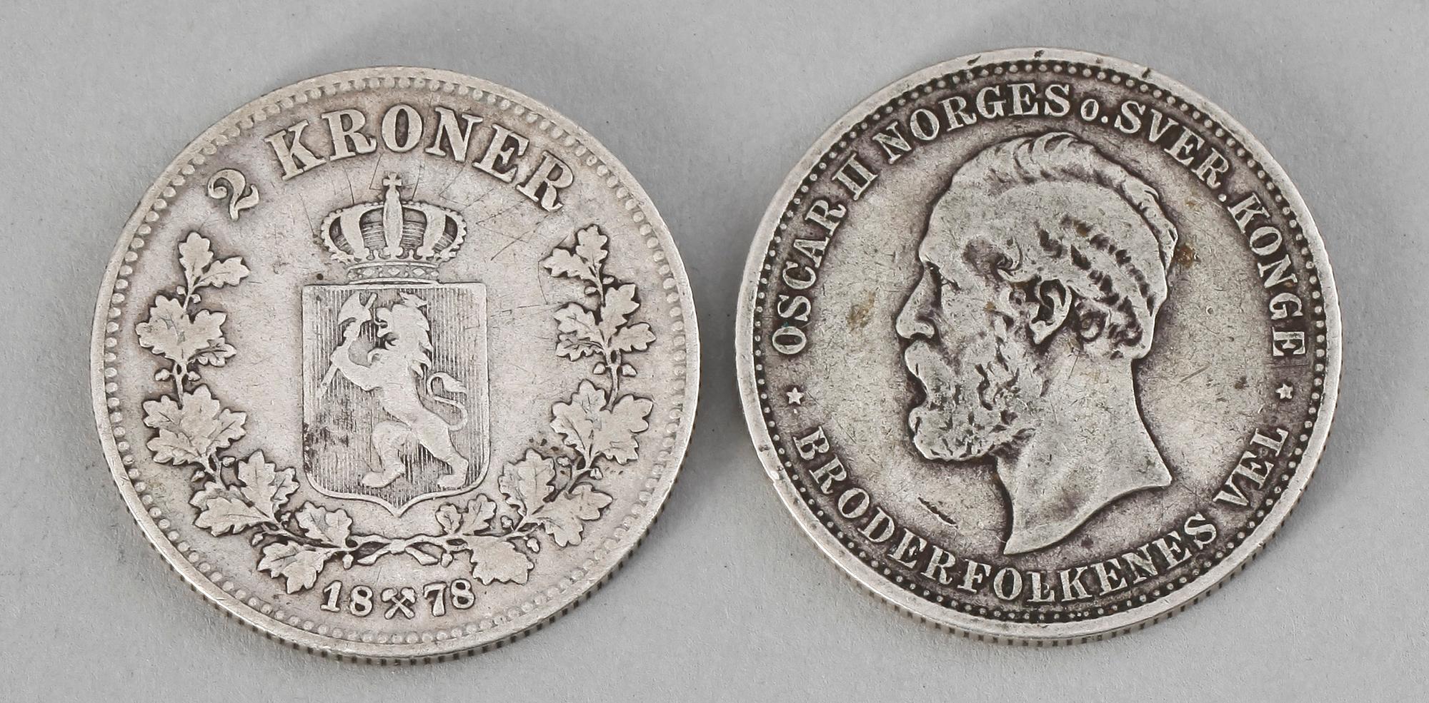 2 kroner 1878. 2 kroner Norge 1902. 50 öre 1893. 50 öre 1902. 50 öre 1891. 50 öre 1893. 10 öre 1898. 2 kronor 1903. 2 kronor 1910. 1 rubel 1898.