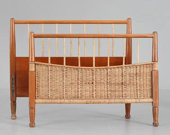 Mahogny med flätad rotting. Innerbredd 90, h 74-84.