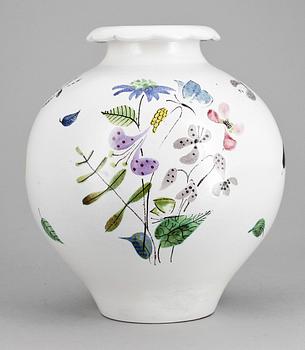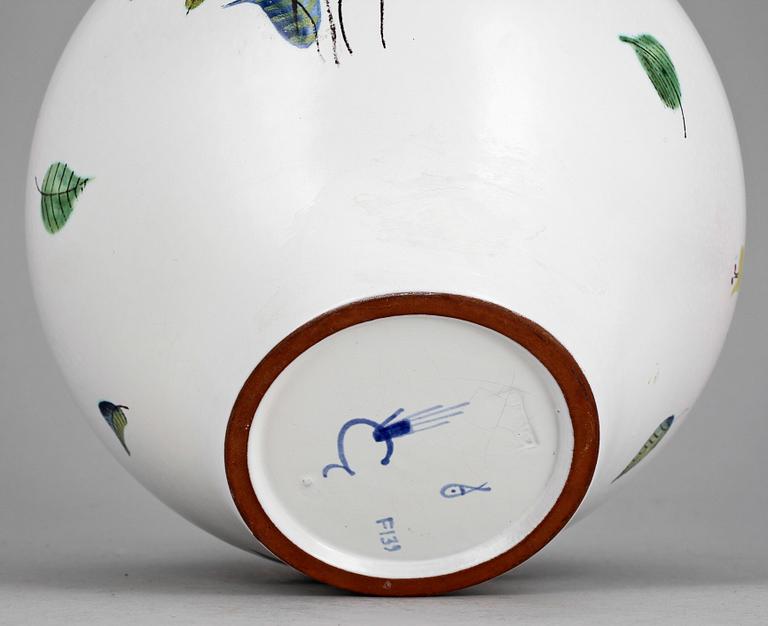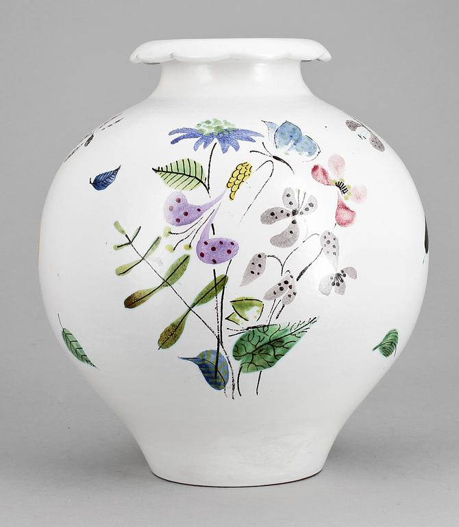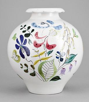 Klotformad med mynning dekor i blomsterblads form. Polykrom växtdekor. H 24.