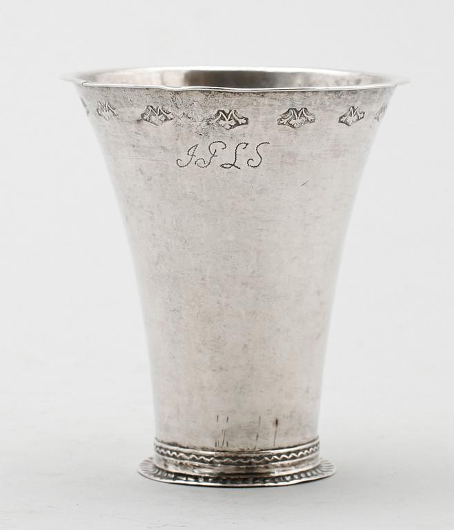 Ciselerad dekor. Med monogram IPLS. H 9,5.
