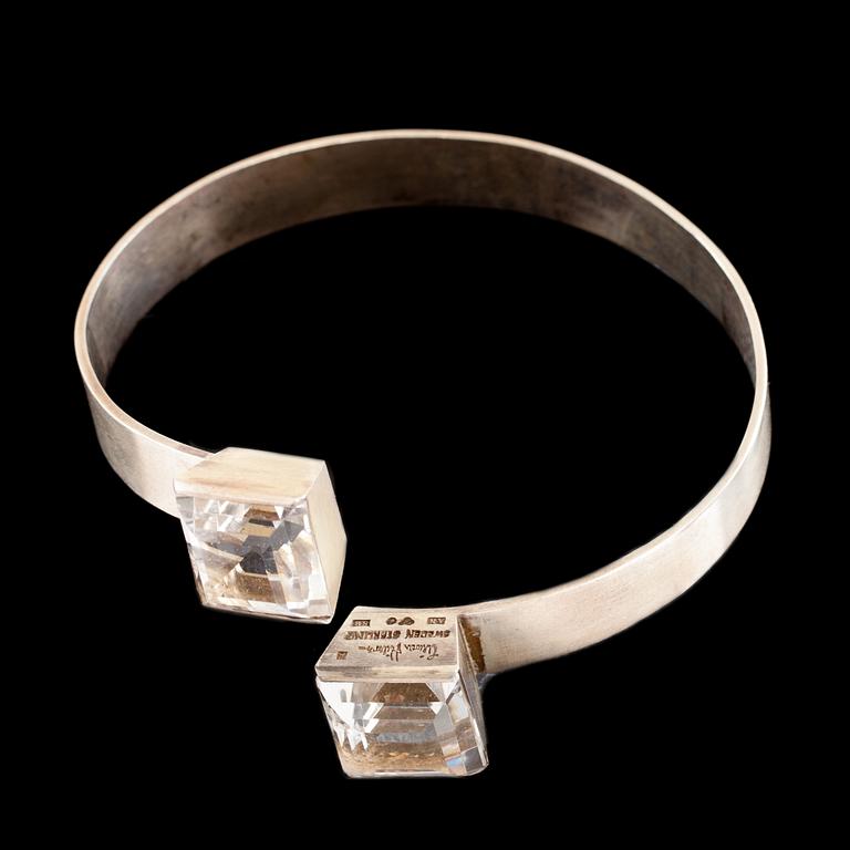 Stel armring med fasettslipade bergkristall. Diam ca 6,5. Troligen omarbetad.