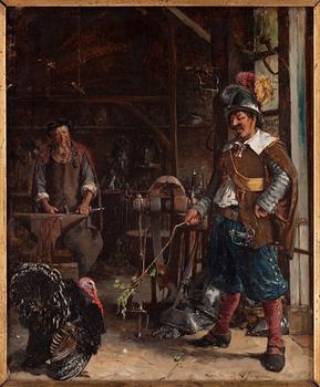 Genremotiv med soldat o kalkon. 37,5 x 46,5.