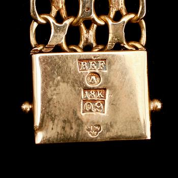 Ljus urtavla med datumvisning. Armband i x-länk BEF Stockholm 1966. Urtavlans diameter 34 mm. Total längd 19,5 cm.