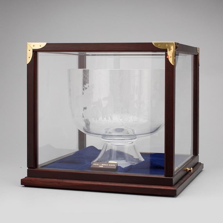 Graverad dekor av skogsdjur. Motiv av Harald Wiberg, gravör B. Swahn. Limited edition. Diameter 27 höjd 25,5 cm. Etikettmärkt. I glasbox.
