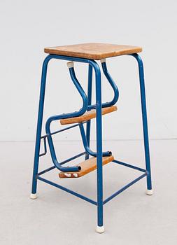 Blålackerad metall. Utfällbara steg. Höjd 60 cm.